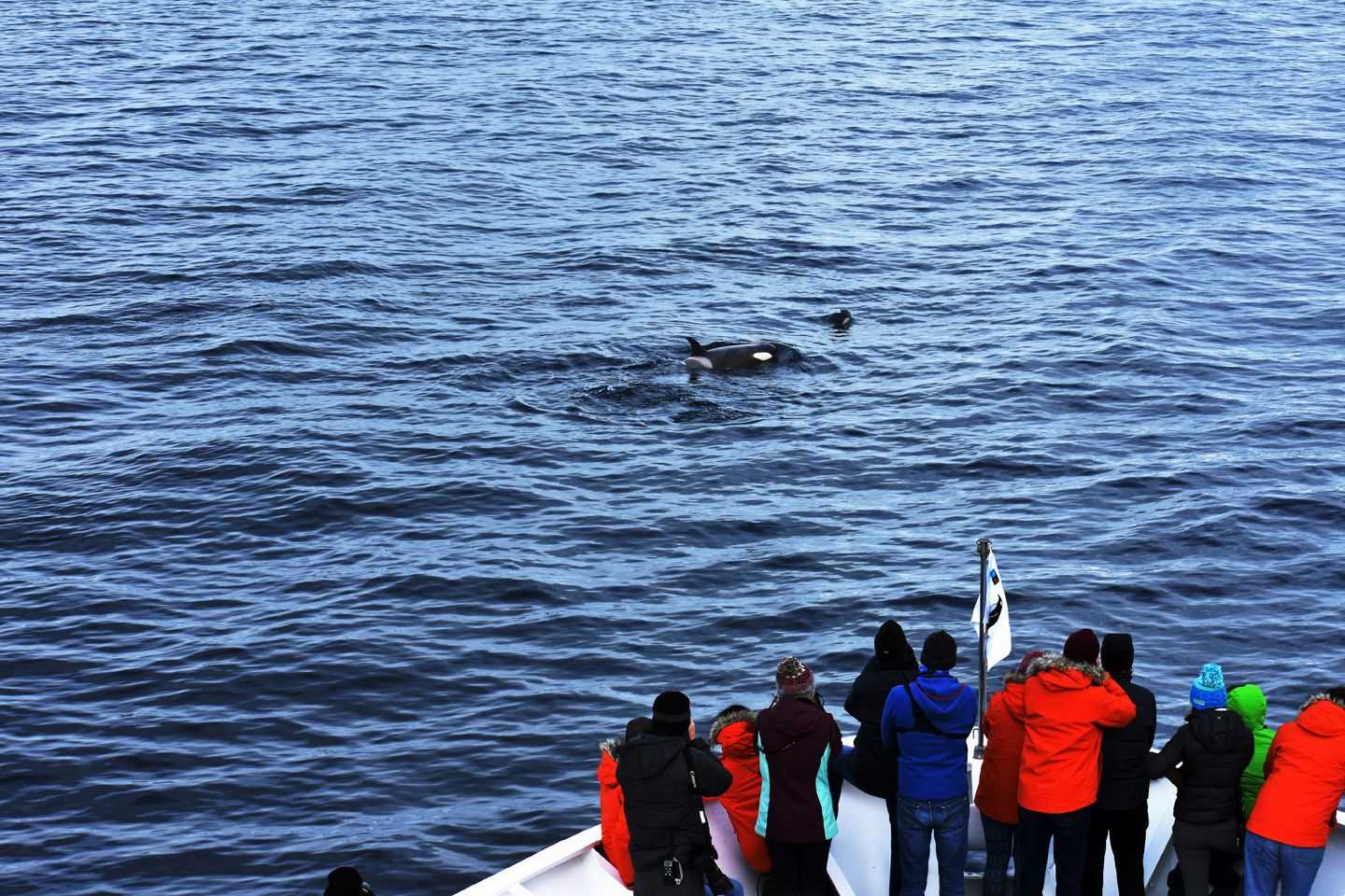 Almost home. Land is in sight as we complete our crossing of the Drake Passage and draw within view of Cape Horn. As sunrise begins to illuminate the clouds, we see the blinking light of the Cabo de Hornos lighthouse. Expedition leader Lucho tells us about the poignant albatross sculpture dedicated to lost mariners and reads us the associated poem in Spanish and English. We are sailing in sheltered waters now, and the sea has reached the balmy temperature of more than 7° C. The seabirds we have learned to recognize in the open ocean–albatrosses, petrels, and prions–are now joined by others, such as imperial shags from Patagonia. Fur seals are once again frolicking near the ship. With formalities complete, there is time for a last series of presentations from our expedition staff, including: a lively account of the world-defining voyage of Ferdinand Magellan by naturalist Madalena Patacho, intriguing ‘Behind the Scenes’ insights into the life of an undersea specialist from Brett Garner, and more about the famous Endurance expedition under the leadership of Sir Ernest Shackleton. After making time for some excellent afternoon Swedish pancakes, we sailed the remaining stretch along the Beagle Channel and came at last to port in Ushuaia. We gathered in the lounge for farewell cocktails with our captain. We celebrated the wonders we experienced over the last ten days, the good friends we traveled with and with whom we shared our discovery of the Antarctic, and the glorious land of Antarctica–the seascapes, history, and wildlife. Where will we travel next? Photo caption: An avian harbinger of the coming day. Photo by Steve Backus