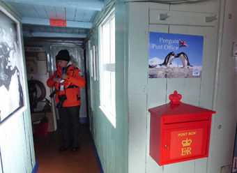 In 1944 the British set up Base A here, a secret location to forestall Argentinian claims to the area and keep tabs on German naval activity in the South Atlantic. Despite these sinister origins, it quickly became a center of scientific research, recording meteorological and ionospheric data. This research played a key part in the discovery of the hole in the ozone layer, but after many active decades, the base was decommissioned in 1962. Thirty years later it still contained much of the original supplies and equipment, but the roof had collapsed and snow filled the rooms. So in 1996 a British Antarctic Survey project began restoring it to its former glory. It is now manned seasonally by the Antarctic Heritage Trust, displaying skis, tools, tins of food, photographs, magazines and pin-up paintings from the 50s, plus (to great excitement from our guests!) a shop and a post office that mails over 70,000 postcards a year to over 120 countries. No wonder it is popular!
