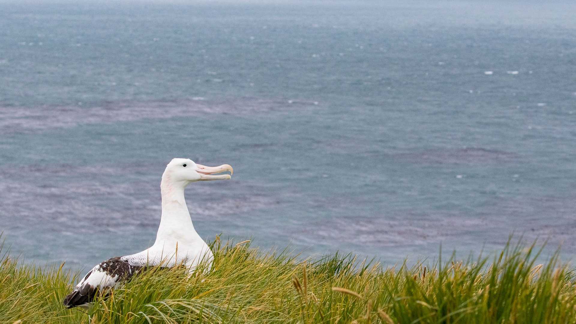 The prize for the day was the afternoon landing at Prion Island, known as a breading spot for wandering albatross and many other sea birds. A unique feature of Prion Island is a long, wooden boardwalk that creates easy access to the very top of the island. Quite a few fur seals are always present to lead us up the boardwalk, but they are mostly pups who are more playful than obnoxious. Reaching the top, one finds a viewing platform close to where the magnificent wandering albatross come to land at their nesting sight. Standing on the platform feels like being at the control tower of an albatross airport, with huge birds soaring just above our heads. Some glide by, others approach with their landing gear (feet) lowered on short final.