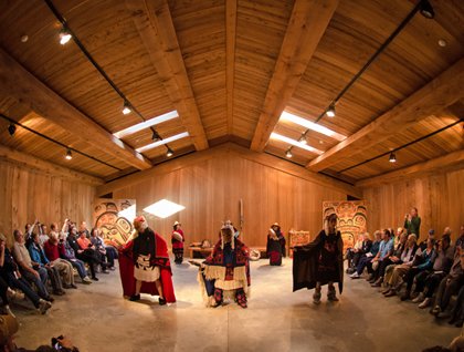 Inside, an array of native artifacts awaited us, complete with stunning examples of craftsmanship and a tracing history that led up to the modern day. Expertly carved masks, finely woven ceremonial garments, and all other manner of items, large and small, were exampled for our guests to view, complete with a local guide to deliver the intricacies of the local history. Afterwards, the guests were invited into a native long house by the tribal chief and bore witness to the intricacies of customs still very much alive in the modern day. The headdress of the chief was filled with the downy feathers of the bald eagle, a symbol of peace and welcome to the guest. Their ceremonial dancing commenced, the men adorned in raven masks and the women beating the rhythm on the stretched hide drums. Guests were treated to a local delicacy of soapberries and sugar, and stories were shared showing how hospitality and honorable practice were among the highest practices of the tribes.