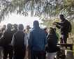 Early before sunrise, some of us gathered in the upper deck. From here we had a nice view of the colorful sunrise. On the shore, great egrets were lined up as if preparing them self for the roll call. We questioned ourselves, why were they there? The answer was soon going to be given.