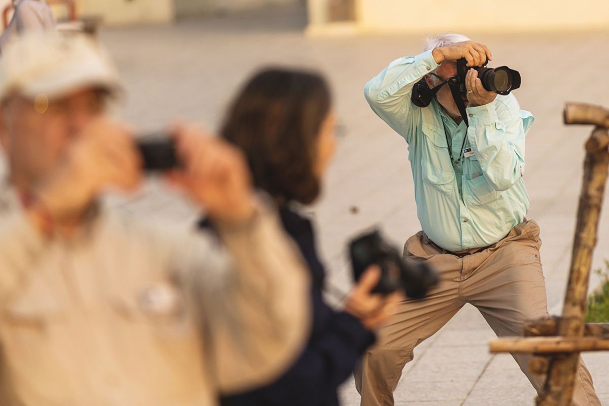 This morning, National Geographic Venture docked at the interesting port, San Carlos. From the 1940s to the 1990s, the port was used for loading agricultural products and fertilizers from the nearby Santo Domingo Valley. Nowadays, San Carlos is basically a place for loading sardines from a local cannery. It is also an important tourist base for whale-watching, principally mating gray whales. At the port, all guests and staff boarded buses to Lopez Mateos, a town located near the northernmost tip of Magdalena Island. The buses traveled across Magdalena Plain, a section of the Sonoran Desert that receives a lot of moisture in the form of dense fog from the Pacific Ocean. Lichens and orchillas, a type of flowering plant, give the desert a phantasmagoric appearance. Guests and staff enjoyed spotting numerous birds, including crested caracaras and kestrels. Once in Lopez Mateos, we boarded local pangas for whale-watching. During two rounds of whale-watching, we encountered several whales close to our pangas. However, most of the whales were preoccupied with traveling, searching for mates, or just finishing their time of reproduction and thus exiting the lagoon. In reality, the whales were not interested in interacting with the boats and their excited cargo, but we had many opportunities to observe the behavior of these magnificent animals. In town, we all delighted in a delicious fish lunch, ‘pescado zarandeado.’ We enjoyed exploring the local dock with its many colorful shops and crafts, and we admired the wonderful sculpture of a cow-calf pair of gray whales.