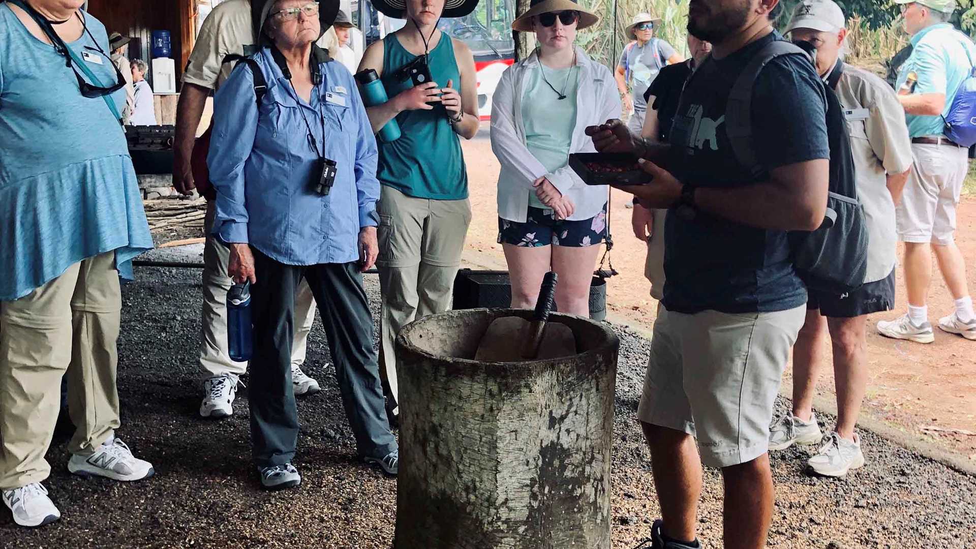In the highlands, we visited a small family-run farm called El Trapiche. Guests learned about how this local family produces small batches of organic sugar, molasses, raw coco, and sugar cane rum. After tasting some of the products, many guests took the opportunity to purchase items to bring back home. After our visit to El Trapiche, we made our way to another small farm for lunch.