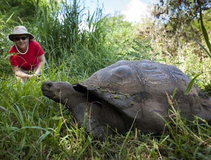 One individual animal has saved his species, the mighty “Super Diego.” On Española Island, due to previous human habits, only 14 giant tortoises remained of their entire species. 12 females and two males shared the island, but were isolated on opposite ends. They were rescued and brought to the Charles Darwin Research Station to begin the era of breeding and repatriation, but the tortoises would not mate. A call was put out to the international community in search for a male from Española, and the call was answered by the San Diego Zoo. They were eager to help with the conservation effort, and the tortoise was flown back to Galápagos and named Diego to honor his old home. Diego arrived, and with surfboard in hand and wearing Ray-Ban sunglasses, he said, “Hello ladies.” Thanks to Diego, and the other hard working tortoises, more than 2,000 juveniles have been repatriated back to Española Island. That is a good news story of conservation. Furthermore, this and many other success stories have been possible thanks to the generous donations from the travelers of Lindblad Expeditions-National Geographic.