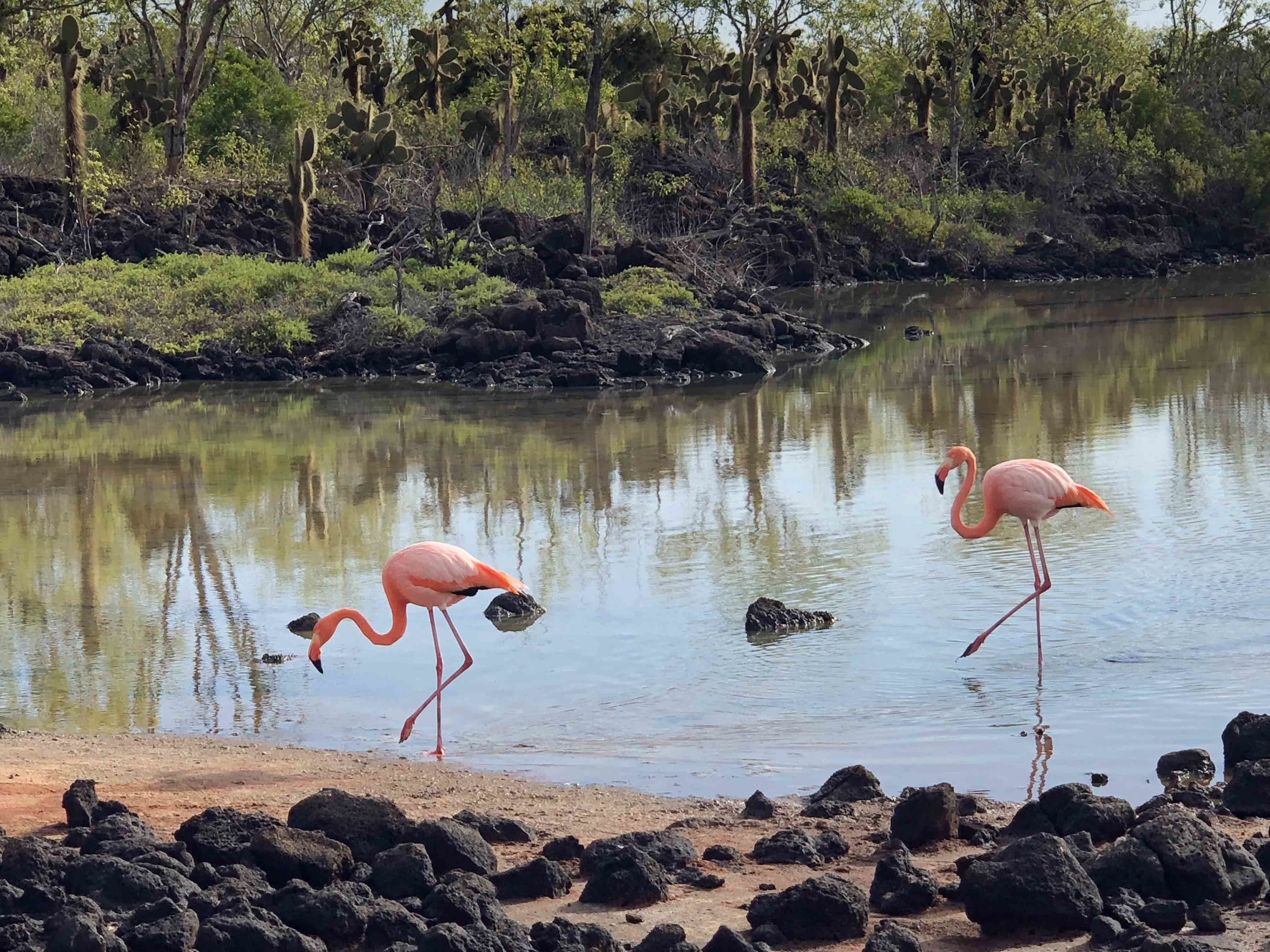 It’s our first full day of expedition on National Geographic Islander . We started our day with a morning hike on North Seymour, which is one of the best islands to observe nesting colonies of frigatebirds, blue-footed boobies, swallow-tailed gulls, and many more species of marine birds. Later in the morning, National Geographic Islander navigated to the beautiful Rabida Island, where we enjoyed an amazing afternoon. Guests swam and snorkeled with sea lions and many different species of reef fish off the red sand beach. We walked to a pond located behind the beach and observed flamingos nesting after more than 20 years on this island.