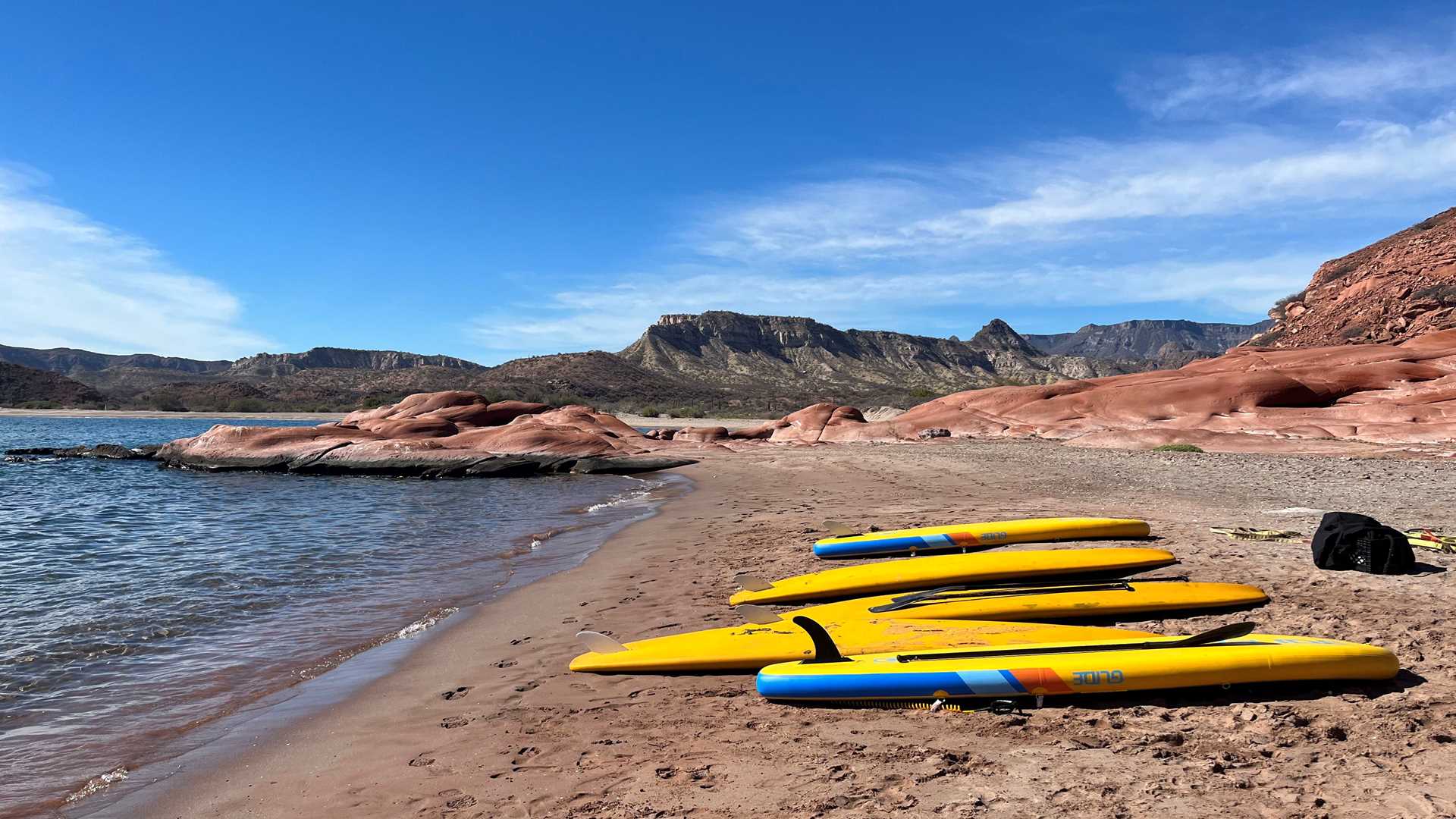 There is nothing quite like waking up to flat glassy seas bathed in pink by the first rays of sunlight that sneak behind the rocks of Puerto Los Gatos. One of the first things you notice are these lithified sand dunes; petrified mounts of sand that extend from the rocks in red and orange hues. We greet the morning with a stretch class by our phenomenal Wellness Specialist Lola, who also preps us for our morning snorkel. We see the usual suspects of the Midriff Islands, the chubs, the Cortez angelfish, the puffers and cornets – and some of us were even lucky enough to spot an octopus. Following our time underwater, we got to enjoy the gems of the beach - its dramatic vegetation changing inland contrasting the dunes. After soaking in some sun, our guests enjoyed dips in the water, followed by kayaking and paddle boarding explorations.