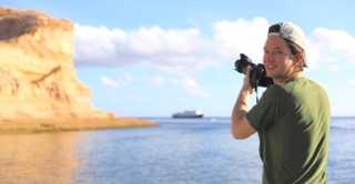 Glorious dawn broke on the National Geographic Sea Bird streaking to the painted cliffs of Punta Colorada.