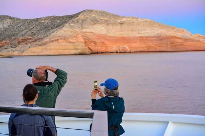After a delicious brunch—complete with beautifully decorated Christmas cookies—our youngest guests to learn how to drive our Zodiacs in lessons taught by our brave Bosun, deck team, and US Coast Guard-licensed staff members. It was not a competition, but the girls’ boat definitely won. A little breeze picked up just in time to suit up for one last dip in the clear waters of Baja while the sun continued to blaze. In a beautiful protected cove with red sandstone cliffs, we snorkeled until we got cold, then headed back to the ship.