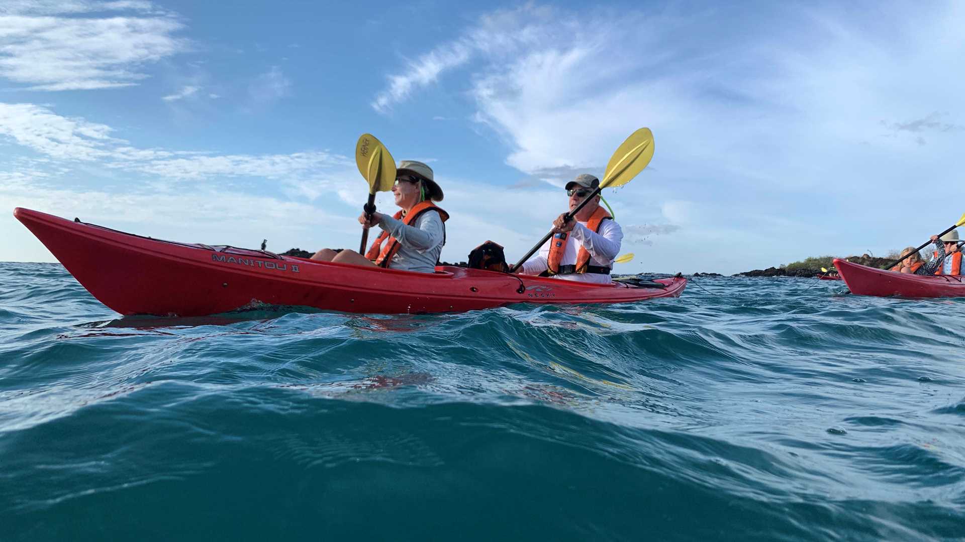 On National Geographic Endeavour II today, we explored Bartolome, home of a small colony of Galapagos penguins. Bartolome is one of the youngest islands, and it is located next to Santiago Island in the central part of the archipelago. After an amazing sunrise, we went ashore for a walk, and we were transported back to a time when the land was newly formed. We began our day by hiking to the top of a tuff cone known as the islet of Bartolome, named after the First Officer of The Beagle . Walking on this young island allowed us to understand the formation and volcanism of the Galapagos Islands. The rocks are a great way to understand the area and its geology. We spotted a few lava lizards and painted locusts, some of the very few animals on this island. As we reached the top, we had a great view. Our guests enjoyed the magnificence of Pinnacle Rock. After we visited one of the most iconic geological formations of the Galapagos, our breakfast was enhanced by dramatic views of the impressive volcanic landscape. We visited the beach near Pinnacle Rock, where we enjoyed how the sun made the sand sparkle due to a concentration of silica. Later, we went snorkeling along the channel between Santiago and Bartolome Islands. Many of our guests spotted whitetip reef sharks and very colorful parrotfish. The landscape was beautiful with lots of sea stars. We enjoyed the chance to be surrounded by Galapagos penguins and feel accepted as part of this environment. After a delicious Mexican lunch, we had lectures on the photography of reptiles and Darwin. Afterwards, we went to Chinese Hat Islet to snorkel from the Zodiacs. The area is home to a small colony of Galapagos penguins. In a sandy-bottomed, sheltered channel, our guests enjoyed swimming with whitetip reef sharks, rays, and many fish. It was a nice and sunny afternoon. After snorkeling, we had the chance to explore the unique, small volcano that formed an island in front of Santiago on a sunset Zodiac ride. After a spectacular day full of activities in the field, we returned on board. Every day in the Galapagos is an opportunity to reconnect with the beauty of nature through unbelievable encounters!