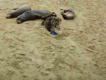Today we arrived at Punta Pitt which is the closest point to mainland Ecuador from the Galapagos, about 600 nautical miles away. It’s on the island of Cristobal, one of the oldest islands of the archipelago. Early in the morning we visited a green sandy beach made up of ashes and olivine crystals, and we had to climb through an eroded canyon created by the erosion of water and wind over hundreds of thousands of years. One of the goals of the morning was to see the three species of boobies found on these islands. We observed red-footed boobies nesting on trees, Nasca Bobbies flying by the shore rocks, and blue-footed boobies nesting in the middle of our trail! The scenic views were also very beautiful: Galapagos Nolana with its succulent leaves, Cristobal giant daisies, and also Sesuvium portulacastrum, or Galapagos carpet weed, a colorful purple and green addition to the rocky landscape and a very attractive succulent plant. After all of that we headed back to the beach for a refreshing swim with sea lions and our younger explorers made sandcastles and even a mermaid sculpture!