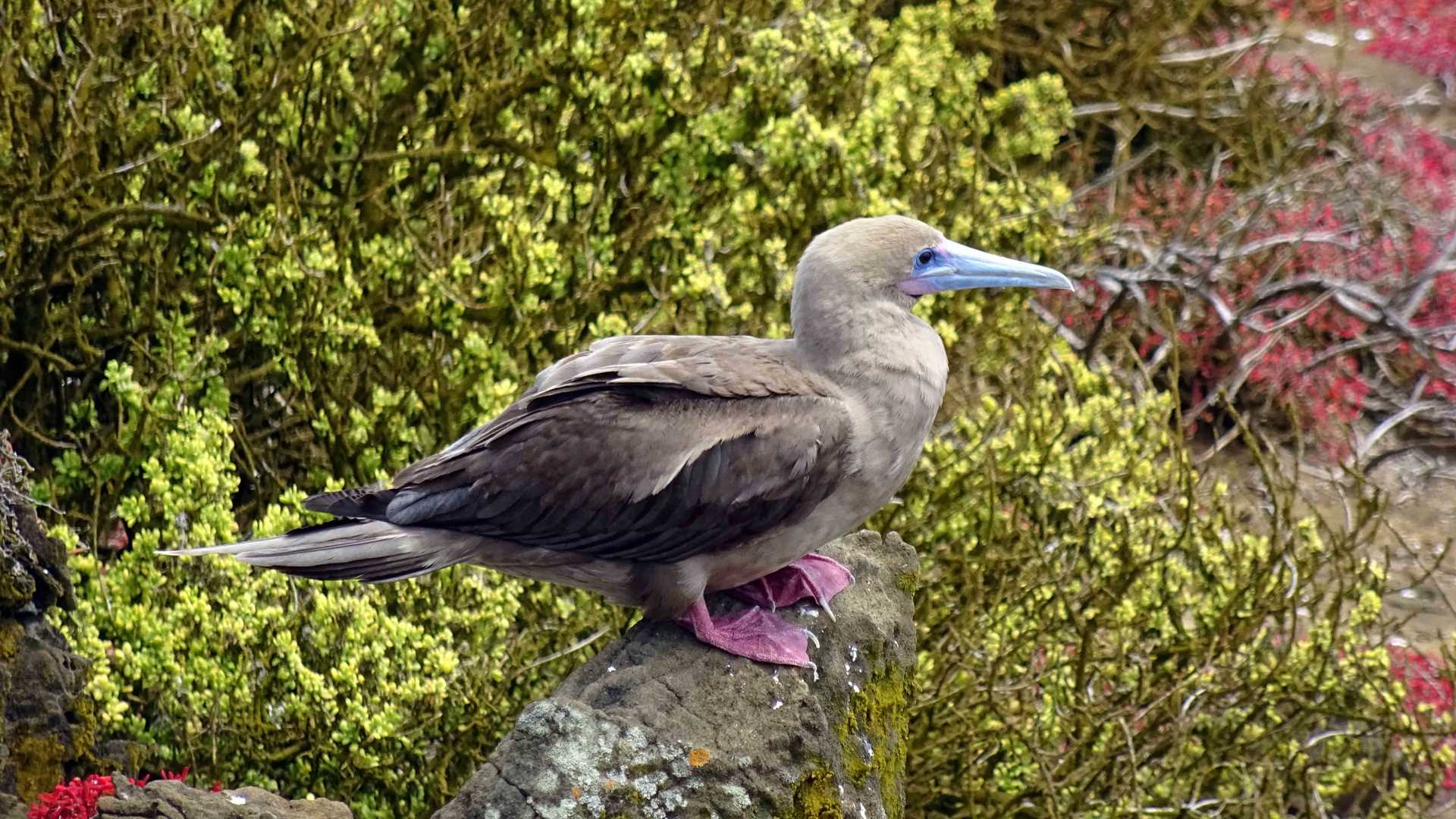 One of the highlights for everybody was searching for the very colorful red footed booby and we found several nesting along the cliffs while others were flying above our heads. One landed on a rock and stayed long enough so everybody could take pictures of it. Another species of seabird found along the trail was the blue footed booby. This morning we saw this species of bird in different stages; some eggs, others downy chicks, and several immature boobies already flying and feeding on their own.