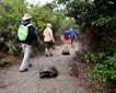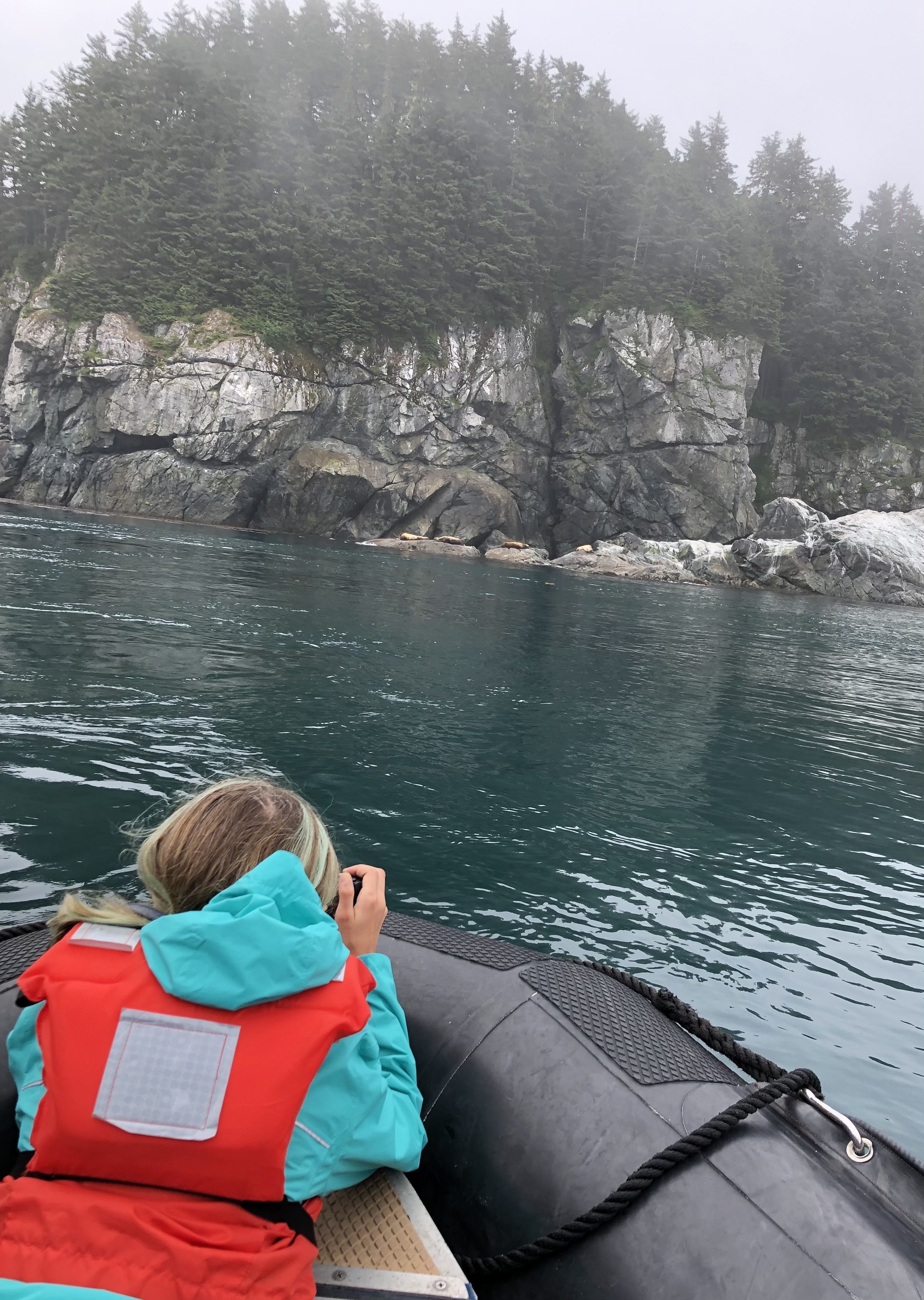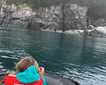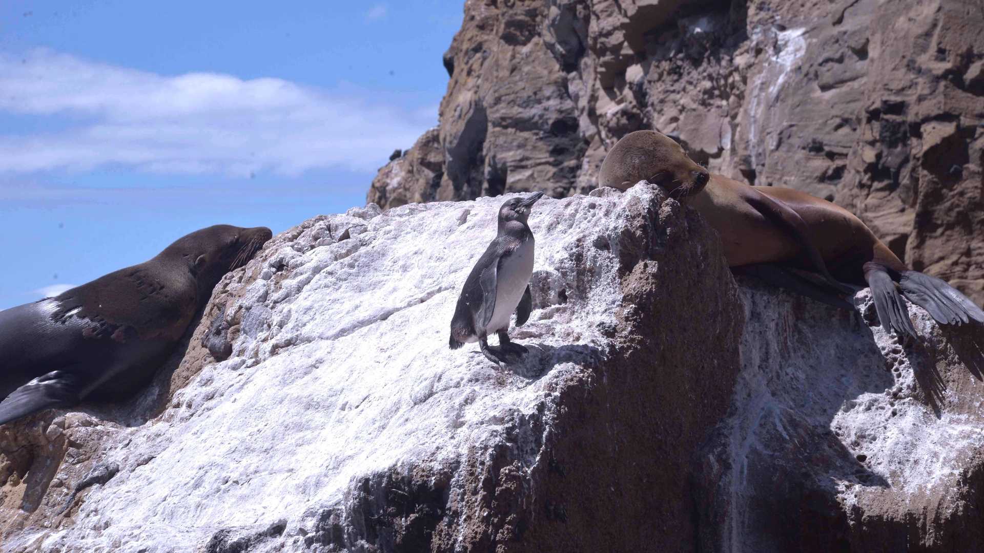 Our day today was full of amazing surprises. The first was the sight of dolphins from the sky deck of the National Geographic Islander. After a delicious breakfast, we went for a Zodiac ride along the shore of Punta Vicente Roca on Isabela Island, where we spotted the second sea lion species of the trip—the Galapagos fur seal. During our morning snorkel, a huge manta ray hovered nearby. In the afternoon, our young explorers learned how animals adapt to their environment by playing “fashion a fish.” We had a remarkable visit to Punta Espinoza on Fernandina Island, where we saw the largest marine iguanas in the Galapagos and had amazing conversations about the natural history and geology of the youngest island. We ended our day with our regular recaps, followed by a delicious dinner served by our talented galley staff onboard the National Geographic Islander.