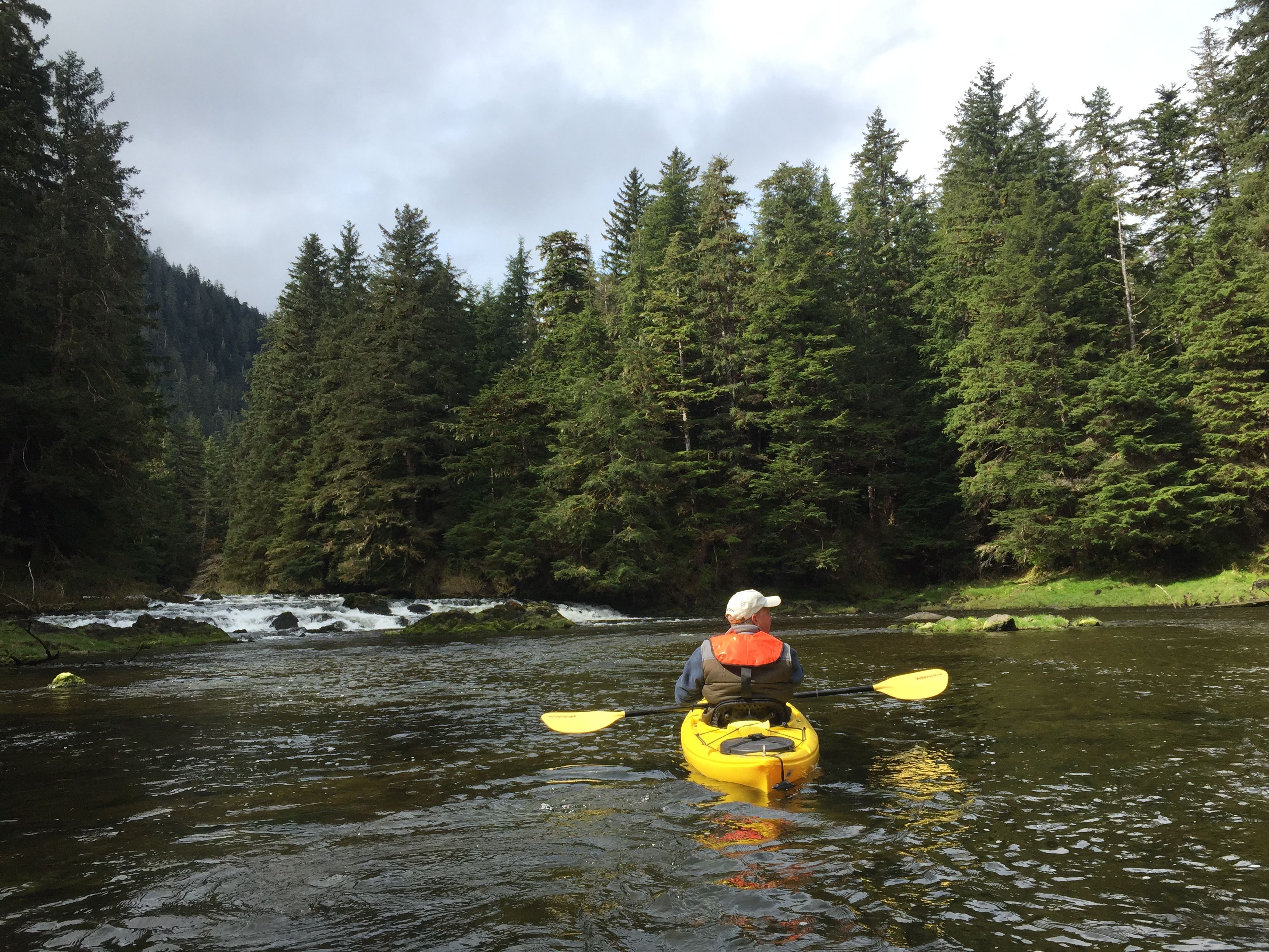 It was a beautiful first day on the island of Haida Gwaii. We marveled at poles and Haida artifacts at the Haida Heritage Center. We also welcomed aboard our Cultural Specialist, Linda Tolla who will be guiding us in the cultural experience of this place. Our hike around Spirit Lake this afternoon was the perfect temperature beneath the boughs of spruce, hemlock, and cedar. We walked among slugs, blooming salmonberry, mosses, lichens, and meandering water.