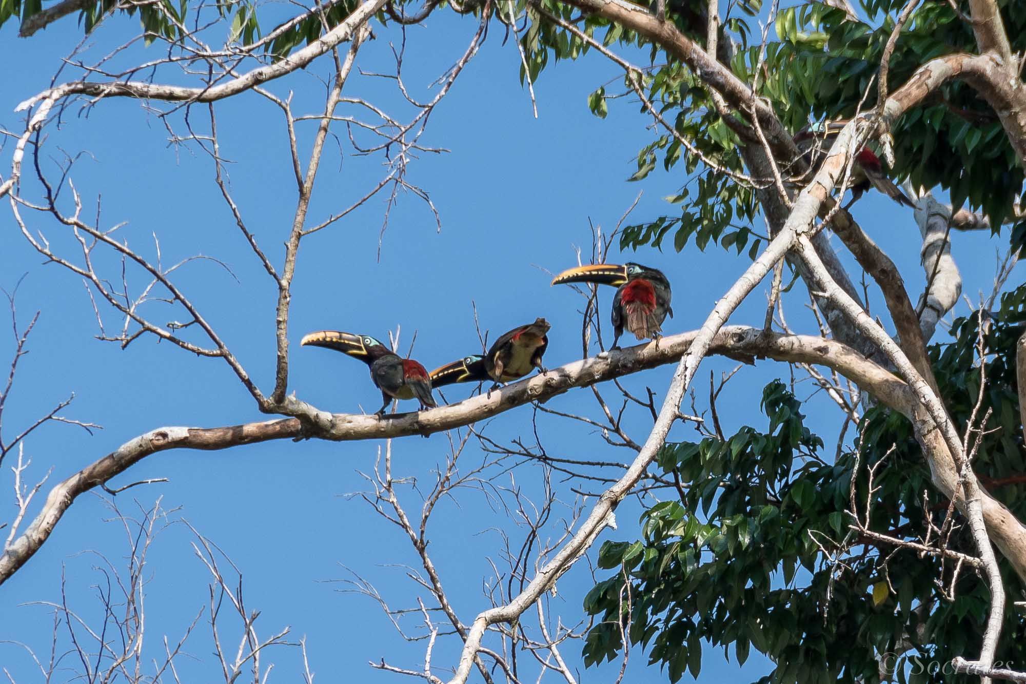 After loading into local skiffs, the passengers traveled east towards Livingston. But first, we circled the Fort, Castillo San Felipe, getting the same view that pirates in the early 1600’s got when attempting to steal the gold stashed in Bodegas, just a short ways along Lake Izabal. The ride across Golfete gave us a view of the Montanas del Mico, over 6,000 ft. high with the tops covered by low clouds. Many great egrets in breeding plumage, neotropical cormorants and brown pelicans watched as we zipped by and the green iguanas in orange breeding color shook their dewlaps at us in defensive display. Gorgeous they were!