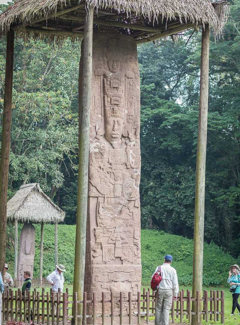Today the crew and guests woke up to a beautiful day alongside the dock at the port of San Tomas de Castilla. Parrots squawked overhead at the dock as our Guatemalan guides eagerly awaited our disembarkation to start what turned out to be a great day. Our first leg of the journey took us to the World Heritage site of Quirigua where everyone learned about the great K’ahk Tiliw Chan Yopaat who became the ruler in 724 AD and became powerful enough to defeat the city of Copan by beheading its ruler. Wow! Of the 17 magnificent monuments in Quirigua, 10 are dedicated to K’ahk Tiliw Chan Yopaat. These sandstone stelae and zoomorphs are only seen in Quirigua. The real star of Quirigua however was undoubtedly the very iridescent turquoise-browed motmot.