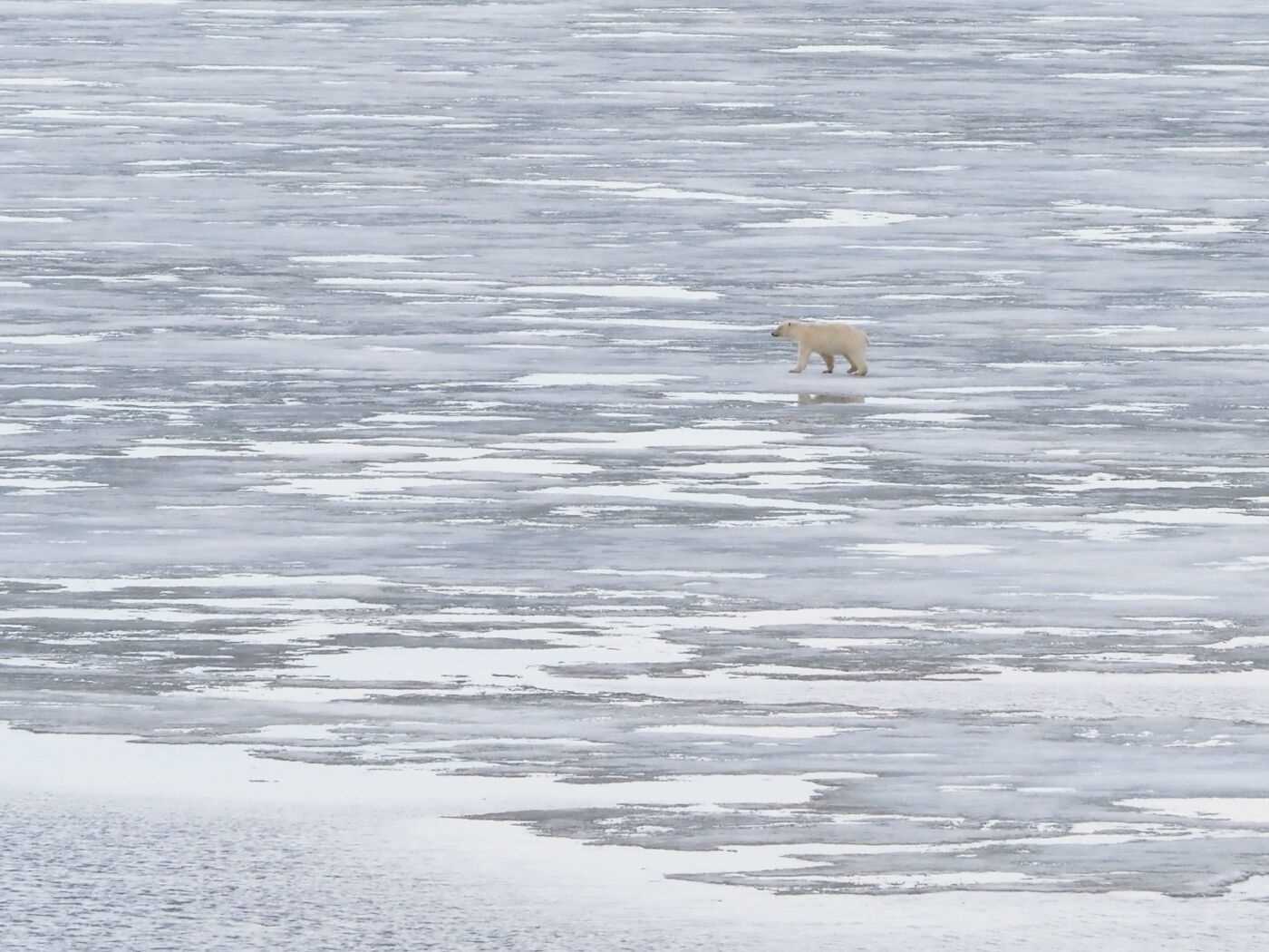 With the sun clearing the clouds, National Geographic Resolution arrived to Research Glacier and set our guests loose upon the glacial moraine. After experiencing the ancient ice up close, we rode our Zodiacs in formation toward a walrus haul out with over twenty of the legendary marine mammals. The afternoon was spent onboard enjoying the luxuries before the announcement that a polar bear had been spotted on the fast ice.