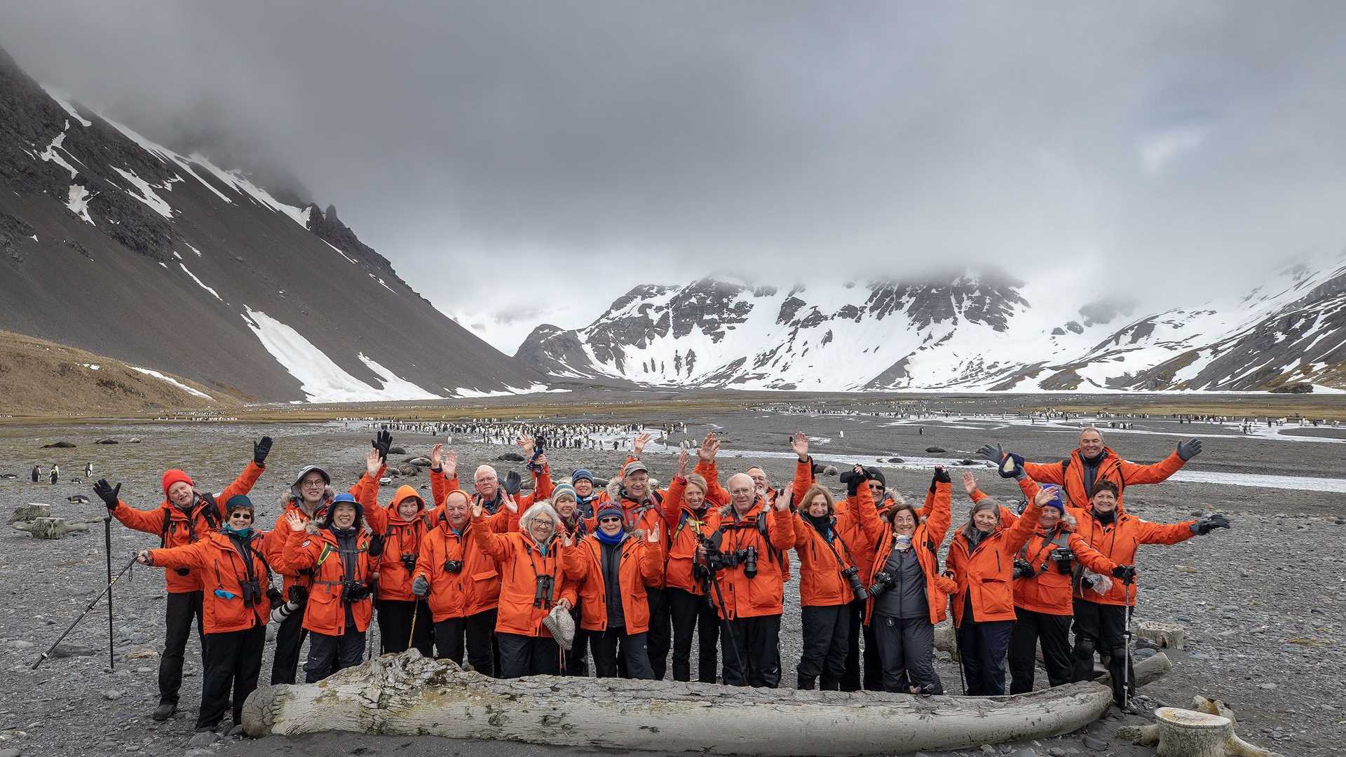 We arrived in Right Whale Bay with a splash. We saw a small but majestic king penguin colony and nearby, a skua. Ferocious fur seals covered the land and caused a ruckus among the penguins as we cautiously hiked by. Along the way, we saw the remnants of a blue whale, as well as an explosive harpoon used for whaling many years ago. On our hike back to the Zodiacs, many guests took photographs near the large whale vertebrae that sat among the elephant seals.