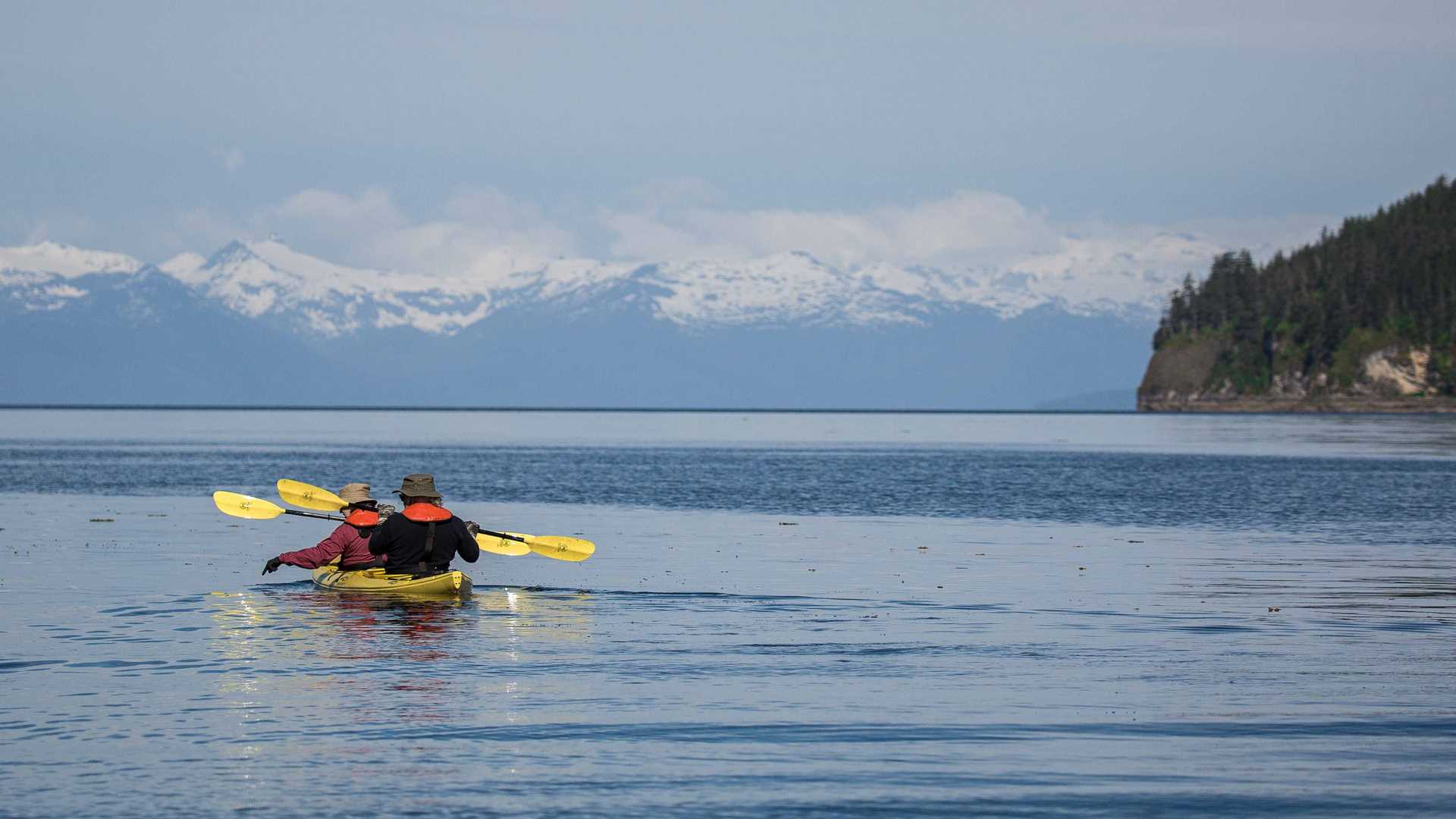Paddles dip past the surface, slicing with delicate purpose through the glassy calm water that fills Saginaw Bay. Removed from the thrum of generators and engines, the silence seems almost loud, as it permeates the moment. Floating, skimming, gliding along in kayaks of determinedly cheery yellow we are able to tranquilly investigate the coastline. This particular mode of expedition transportation, especially under such ideal conditions, allows for one’s imagination to conceive that perhaps we are toeing the boundaries between planes. Allowing us to look down into clear waters and seeing the thriving life that exists along the rocky bottom, or organisms that gracefully pulse in a weightless world, feeding on the microscopic creatures that flourish in these cold waters. Above, bald eagles and ravens flaunt their own gravity-defying prowess, vocalizing occasionally to punctuate the otherwise pervasive quietude. Hovering on this boundary between air and liquid, wet and dry, cool and warm, presents a fuller picture of the environment we are so privileged to immerse ourselves in, figuratively of course.