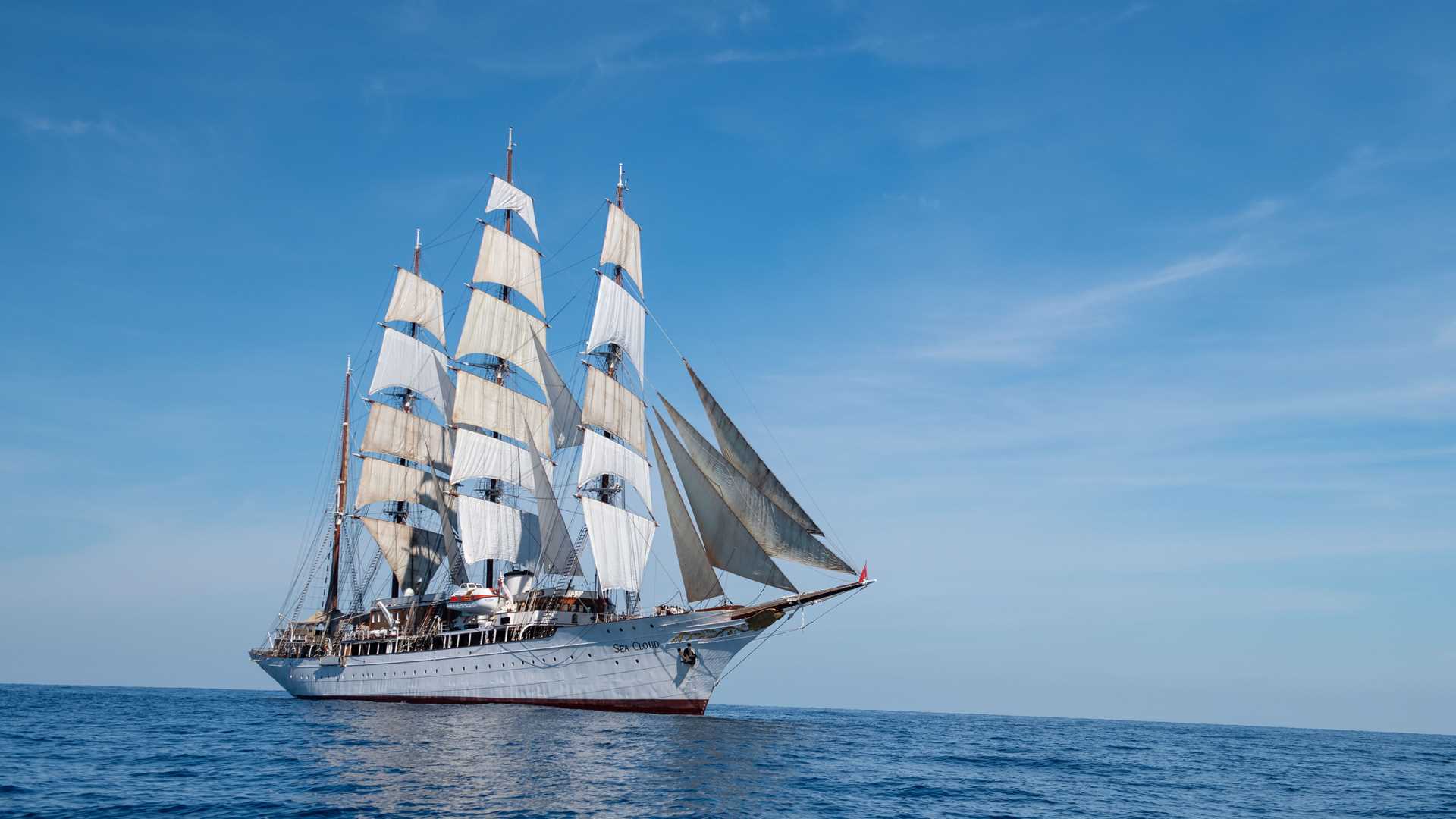 Today, we spent the day at sea crossing the Adriatic Sea from Dubrovnik, Croatia to our next port of Otranto, Italy. Our action-packed morning started with a presentation by the captain, who narrated the process of setting up the sails, which started at the spanker deck and moved to the bow. We watched as the 17 deck hands climbed up and down the masts to unclip the sails before using ropes to release them. In total, 26 sails were set in roughly an hour. Afterwards, guests were able to walk on the forward part of the bow and chat with crew members. Next, our photography instructor gave a presentation on smart phone photography. After lunch, we also did the Sea Cloud safari–a Zodiac cruise around the ship for photographs with a close-up look at the stern, where the boat’s original name can be seen. Our historian, Dr. Robyn Woodward, gave a presentation on The Normans Kingdom in the Sun later in the afternoon, followed by crepes at teatime. Before dinner, the captain hosted a cocktail party on the Lido Deck.