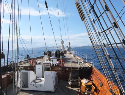 After a very busy, action-packed day in Santorini yesterday, we enjoy the opportunity to unwind and relax on board Sea Cloud as we sail north towards Piraeus. With great winds throughout the day, the weather is perfect for sailing and Sea Cloud proudly displays her beauty with her sails aloft. National Geographic expert Katy Croff Bell gives her final lecture on board on underwater exploration and archaeology, followed by an oceanographic overview of the Mediterranean by her husband Rich.