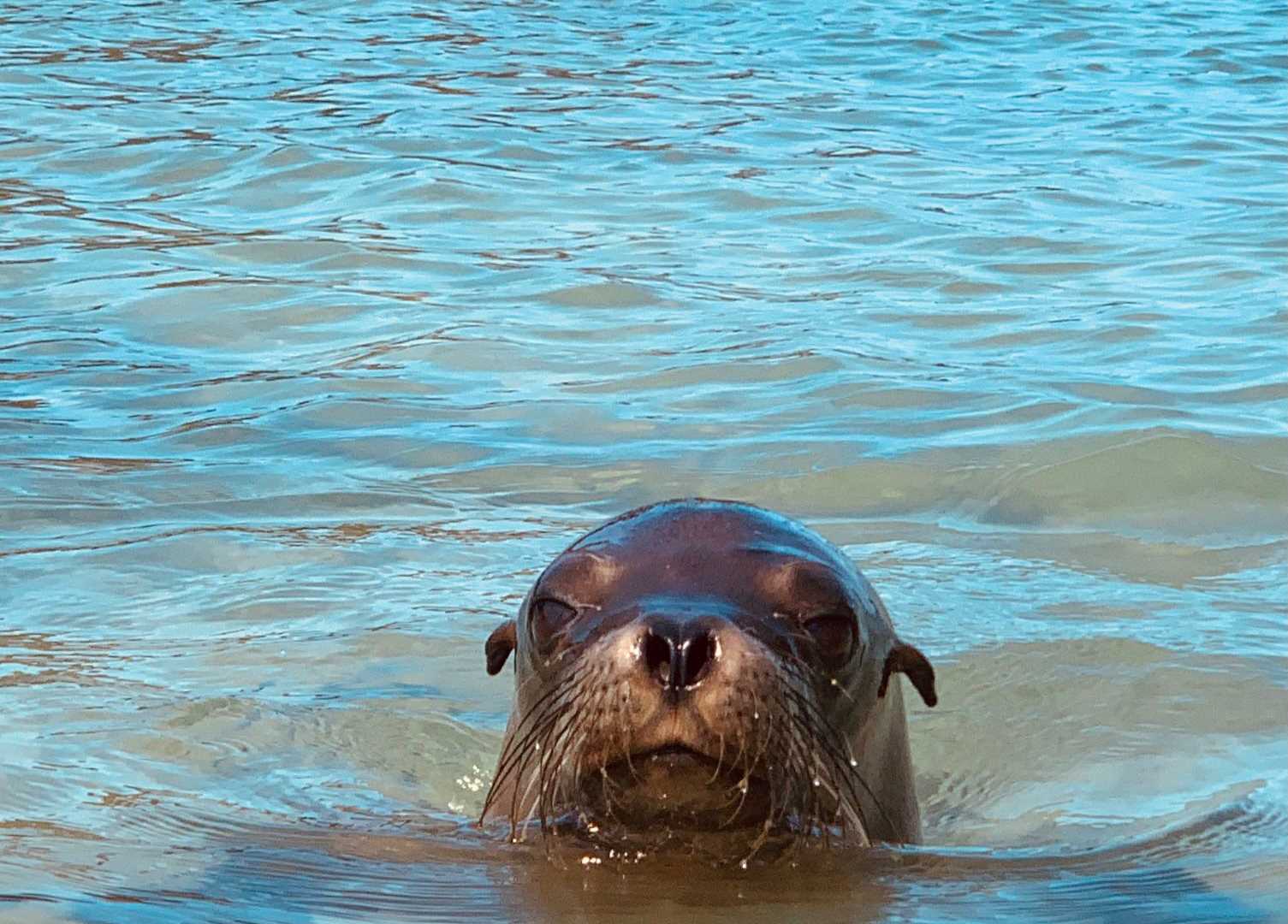 We woke up to super calm waters off the northern coastline of Floreana Island. Perfect conditions for a bit of kayaking among the offshore islets near Post Office Bay! Brown pelicans, egrets, green sea turtles, and red, black, and white mangroves…a peaceful environment for an hour or so before breakfast. Some guests went straight to the beach to walk a few yards through saltbushes and found themselves facing the famous “barrel” of Post Office Bay. It’s been over a century since the barrel was first placed here for use by whalers to exchange correspondence and carry back letters of business, or perhaps letters to loved ones. Today, postcards fill the barrel, but the turnover is fast. Each day, some of the postcards are taken for delivery while others are left behind in hopes that someone will continue the tradition and hand-deliver them in the weeks to come. Between breakfast and lunch, we played in or on the water around Champion Islet, just to the northeast of Floreana Island. We didn’t make a landing but explored by Zodiac, including a birdwatching circumnavigation followed by deep-water snorkeling in incredible waters with parrotfish, angelfish, pufferfish, damselfish…all kinds of fish! Sea lions buzzed by, desperate to draw attention and get a reaction out of us, which they did. Squeals and shrieks were heard. After an instructional briefing on iPhone photography and a presentation on Charles Darwin in the afternoon, we went ashore on the main island of Floreana. There has been quite a drought this year and not much rain the previous year either. The land was dry, the vegetation was brittle, and dead leaves were everywhere. But all that is fine for the native and endemic species; after all, they’ve been through this before, over the millennia, and survived. The stress is on the introduced species who depend on higher amounts of freshwater for survival. While their defenses are down and populations are stressed, now is the time to really push for programs to eradicate introduced species. Floreana Island is ready for restoration. The National Park and collaborating NGOs are preparing Floreana to receive native species that were once thought doomed for extinction. Giant tortoises, Floreana mockingbirds, and racer snakes may yet survive and prosper with the help of these organizations. We spent the afternoon following an easy trail from a dark-colored beach of mineral origin and over the isthmus to a white, organic beach where green sea turtles were riding the breakers offshore. The turtles are not quite ready to come ashore and lay eggs, as temperatures are still too low for another month or so. But a great blue heron and frigatebird were checking out the scene, just in case someone tried for an early nesting. It will be a couple months before hatchlings try to race to the ocean in the dark of night. We returned to our base of operations as the sun set low on the horizon. National Geographic Islander II was waiting for us with hot water and the comforts of home.