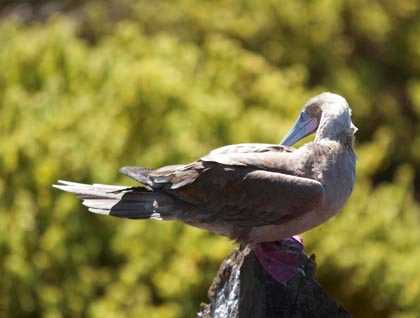 Our morning activity took place in a visitor site known as Punta Pitt, a dramatic geological formation that is the remains of a tuff cone. We followed a path which has been formed by running water during the rainy season over hundreds of years. Very impressive geological features we enjoyed seeing along the trail, in this area that is also the home for the third species of boobies found in this paradise, the red footed boobies.