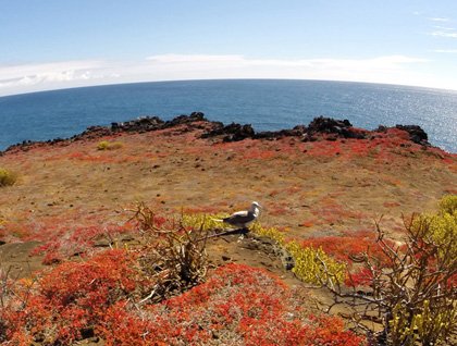In the morning, we started exploring a small offshore island which is home to a variety of seabirds and many sea lions. The water that surrounds this little rocky speck is turquoise and it is dotted with schools of yellow-tailed mullet fish. Moments after landing at the beach, we started to climb the slopes of this magnificent volcanic landscape.