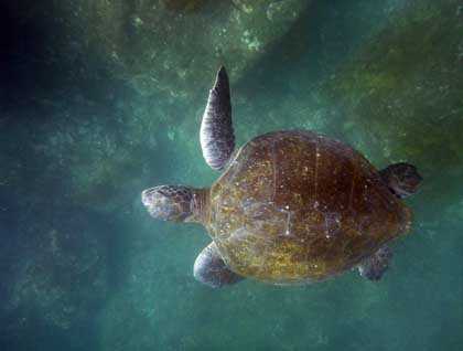Just before lunch, the National Geographic Islander started navigation heading west to Kicker Rock or “Leon Dormido” where we started our last activities, swimming around an impressive tuff cone. We observed many green sea turtles, colorful fish, rays and different species of sharks during the snorkeling. Galapagos sharks, white and black tipped reef sharks delighted our guests. Afterwards we all returned to the ship and we circumnavigated Kicker-Rock, observing the gigantic formation. From the deck we watched an incredible sunset while in the air magnificent frigate birds were our last companion as we ended this incredible week in the Galapagos.