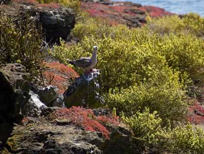In the morning we landed at a place called Punta Pitt. A long time ago, explosive eruptions resulted in large amounts of ash that later settled and formed a tuff cone. Over time this cone has been shaped by the rains that come every year, forming the trail that we now use to hike Punta Pitt. As we climbed up the trail, the scenery amazed everyone, with the layers of compacted ash and the ocean in the background. The most exciting feature of this site is the presence of the rare red-footed boobies—the only species of booby that our guests had not yet encountered during this expedition. We also found blue-footed boobies nesting right next to other species of seabirds. After a great hike, we went back to the beach for some relaxation time. Some of our guests took the opportunity to go snorkeling from the beach, and were rewarded with sightings of baby sea lions, who stole the show with their playful spirit.