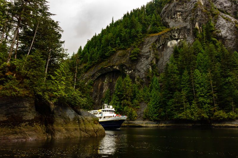 After another delicious breakfast aboard, we disembarked on Punta Pitt welcomed by playful juvenile sea lions who rest on this beach after long hours of chasing fish to feed in the ocean. We started the hike in Punta Pitt with an uphill walk along the beautiful trails and walls of eroded tuff formations, where we could observe interesting geology craved by waves and wind. Once at the top, we could appreciate the stunning view of the beach and as we were contemplating the view, a male blue-footed booby caught our attention, as he was only a few meters away and displaying courtship behavior sky pointing his bill and tail and opening his wings while proudly showing his bright blue feet.