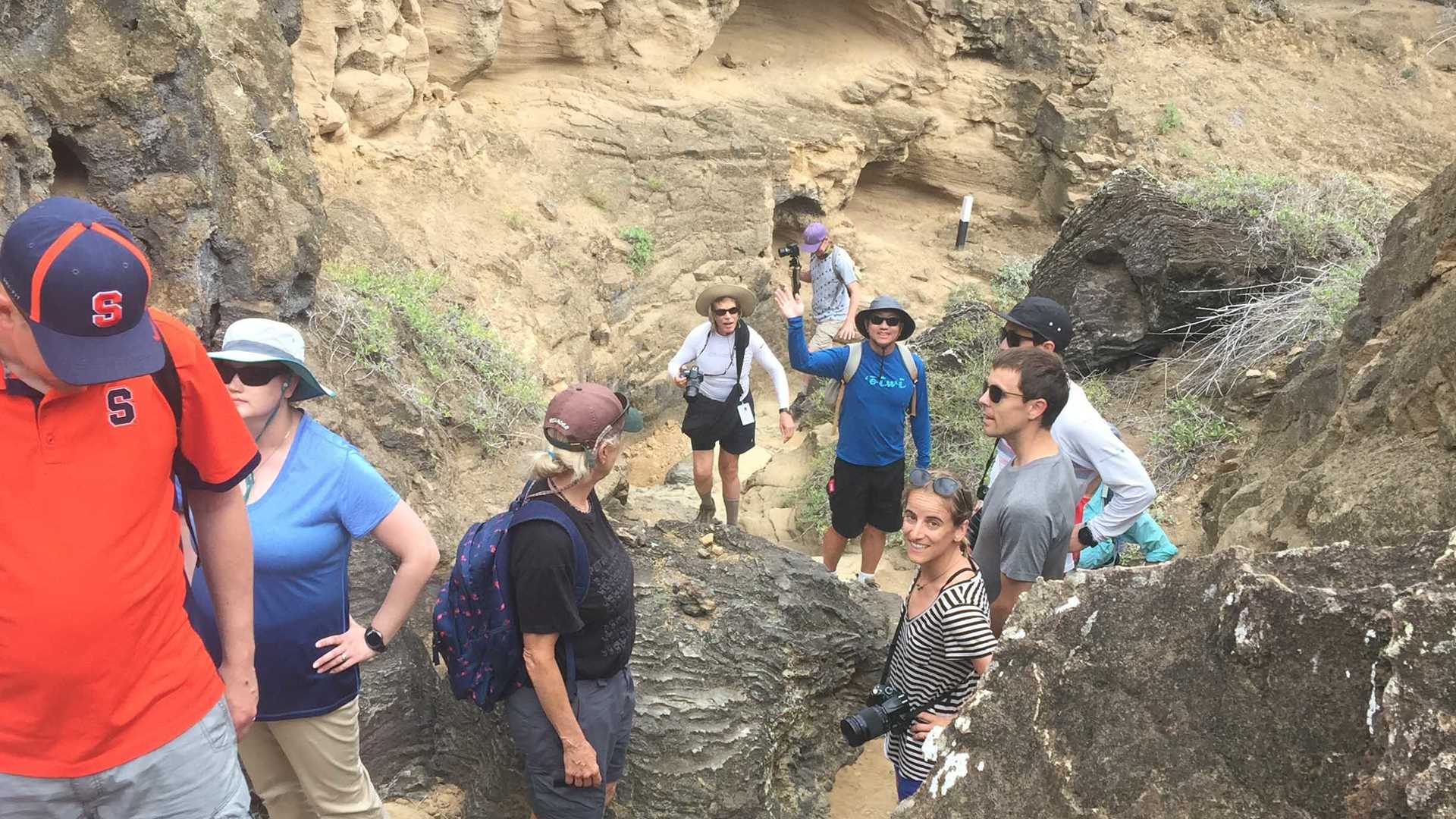 This morning we visited Punta Pitt on the northern part of the Chatham Islands. A huge tuff cone has eroded, exposing a brown sandy beach where crystalized minerals shine with the morning sun. We landed barefoot and, after drying our feet, we walked up a ravine to see endemic lava lizards, mockingbirds, and red-footed boobies. This spectacular scenery leads to a cliff where red-footed boobies nest in nolana bushes, a succulent plant endemic to this area. After the walk, we cooled ourselves by swimming in these pristine waters. We spent the afternoon in Cerro Brujo, a white sandy beach with gentle waves that was inviting to swim in. At sunset we navigated toward Kicker Rock, ending a spectacular day in paradise.