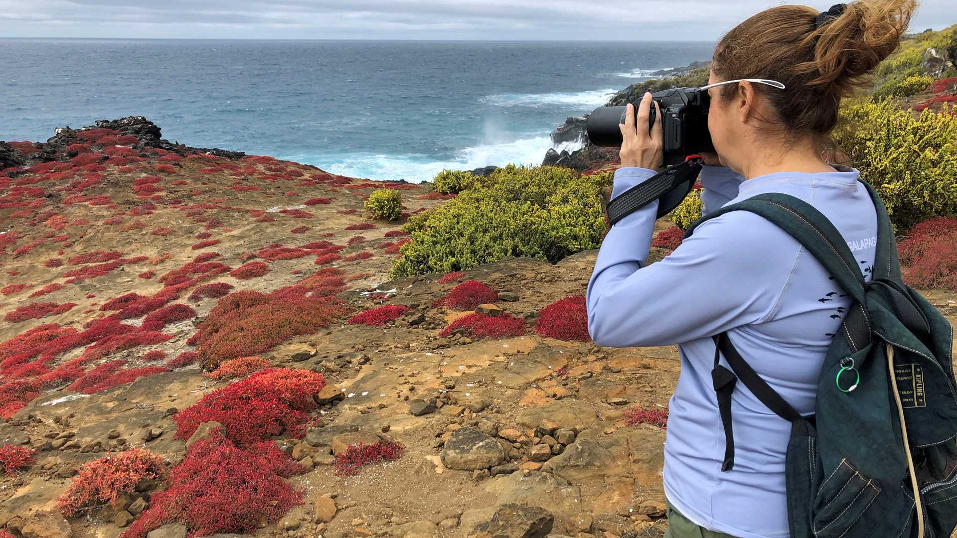 Punta Pitt also has impressive scenery from up above. We observed both clear and cloudy skies, and the inversion layer kept us cool and pleasantly comfortable during our walk. All our senses were heightened as we listened to our surroundings while searching for red-footed boobies. We were lucky enough to see them very close. We also succeeded in finding a San Cristobal mockingbird and the lava lizard that is endemic to the island.