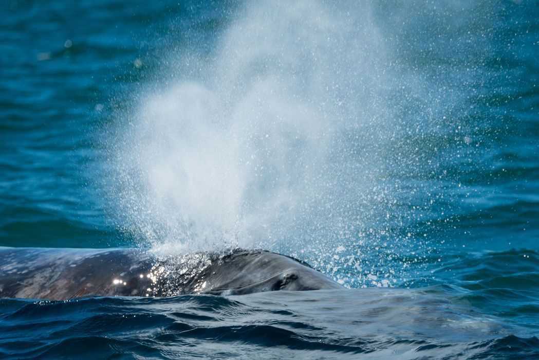 Another beautiful, calm day welcomed the travelers aboard the National Geographic Sea Bird to San Ignacio Lagoon. Our morning on the water was filled with a variety of experiences. There were quiet moments observing the birdlife overhead, including royal terns and white ibis. Then we were back to splashing and chipper exhalations during our encounters with the friendly gray whales. The day was full and rich, ending on a colorful note with our first blue whale sighting and a green flash at sunset as we headed south toward the tropics.