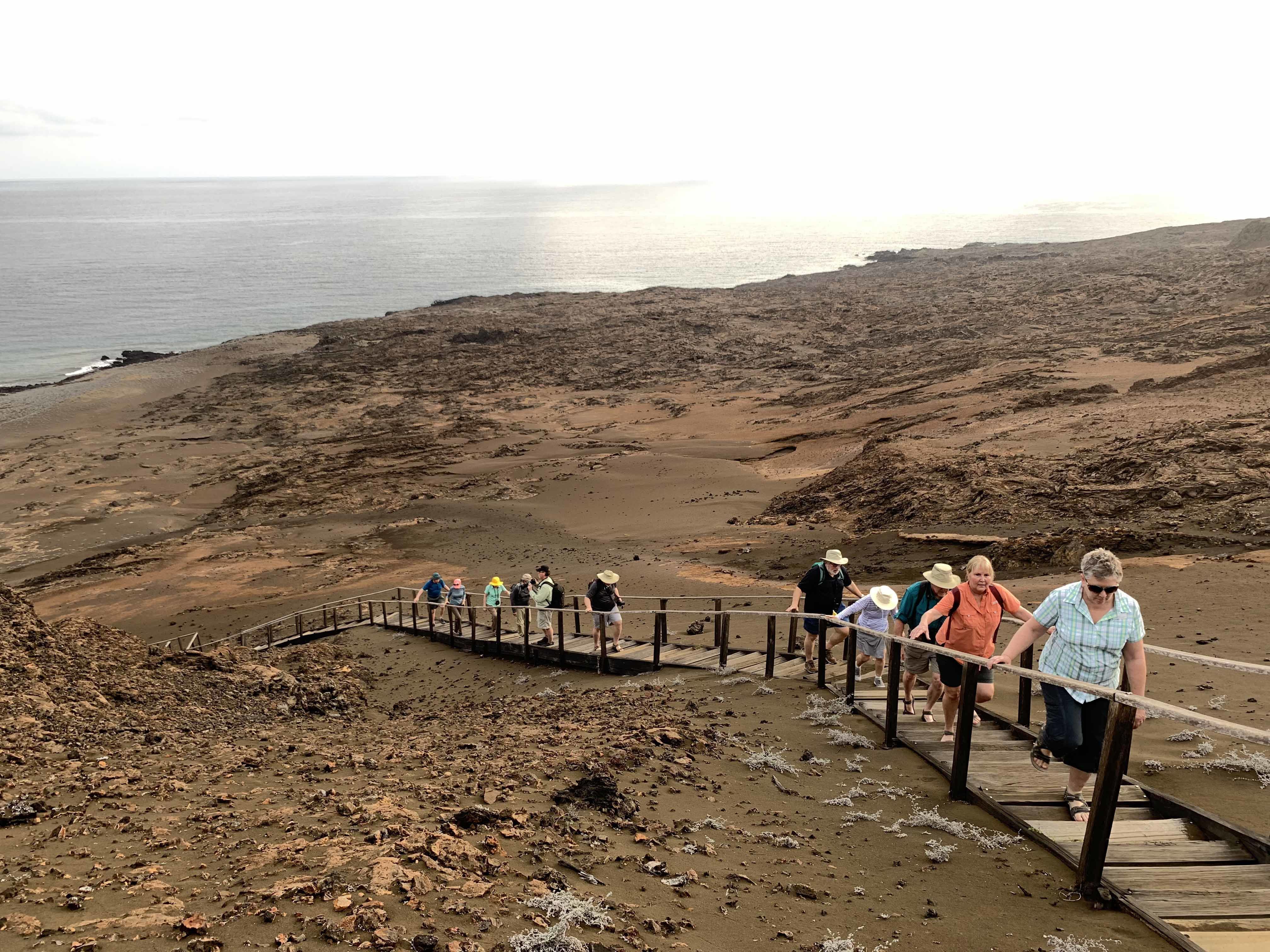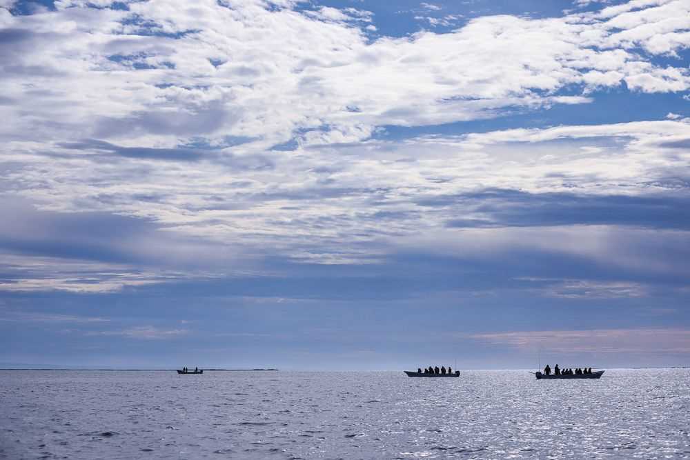 This morning, National Geographic Venture docked at the interesting port, San Carlos. From the 1940s to the 1990s, the port was used for loading agricultural products and fertilizers from the nearby Santo Domingo Valley. Nowadays, San Carlos is basically a place for loading sardines from a local cannery. It is also an important tourist base for whale-watching, principally mating gray whales. At the port, all guests and staff boarded buses to Lopez Mateos, a town located near the northernmost tip of Magdalena Island. The buses traveled across Magdalena Plain, a section of the Sonoran Desert that receives a lot of moisture in the form of dense fog from the Pacific Ocean. Lichens and orchillas, a type of flowering plant, give the desert a phantasmagoric appearance. Guests and staff enjoyed spotting numerous birds, including crested caracaras and kestrels. Once in Lopez Mateos, we boarded local pangas for whale-watching. During two rounds of whale-watching, we encountered several whales close to our pangas. However, most of the whales were preoccupied with traveling, searching for mates, or just finishing their time of reproduction and thus exiting the lagoon. In reality, the whales were not interested in interacting with the boats and their excited cargo, but we had many opportunities to observe the behavior of these magnificent animals. In town, we all delighted in a delicious fish lunch, ‘pescado zarandeado.’ We enjoyed exploring the local dock with its many colorful shops and crafts, and we admired the wonderful sculpture of a cow-calf pair of gray whales.
