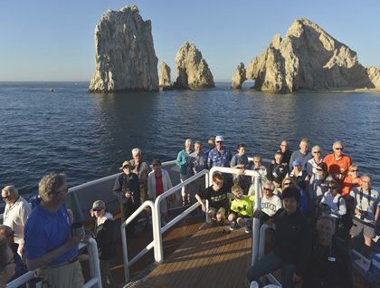 Just before dawn the National Geographic Sea Bird continued making her way down the eastern side of the Baja Peninsula. The sunrise was slightly hidden by the mountains of the peninsula, but not the glow of the first light of day. As we approached Land’s End, the most southern tip of the Baja Peninsula, activity was already going strong in the most well known resort town found along this 1,000-mile peninsula. Sport fishing boats were roaring out to sea, small local fishing boats were also making their way out into the waters of the Gulf of California or Sea of Cortez. Our Captain carefully maneuvered the National Geographic Sea Bird for a well lit and close approach to a gorgeously seawater-and-weather eroded arch located in the granitic rock that makes up the very tip of Land’s End.