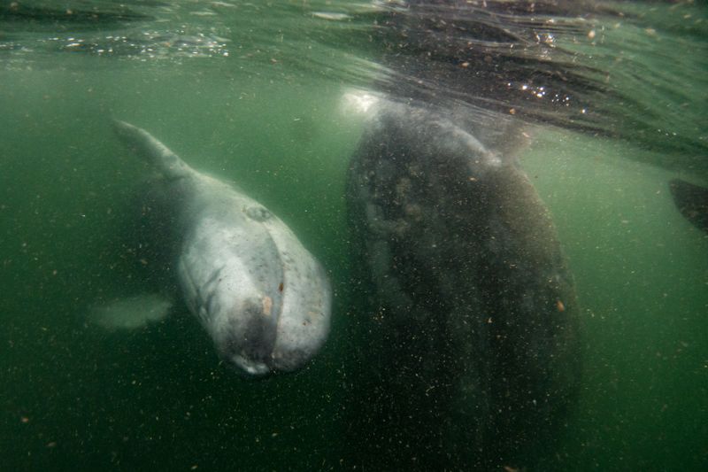 This morning, National Geographic Venture docked at the interesting port, San Carlos. From the 1940s to the 1990s, the port was used for loading agricultural products and fertilizers from the nearby Santo Domingo Valley. Nowadays, San Carlos is basically a place for loading sardines from a local cannery. It is also an important tourist base for whale-watching, principally mating gray whales. At the port, all guests and staff boarded buses to Lopez Mateos, a town located near the northernmost tip of Magdalena Island. The buses traveled across Magdalena Plain, a section of the Sonoran Desert that receives a lot of moisture in the form of dense fog from the Pacific Ocean. Lichens and orchillas, a type of flowering plant, give the desert a phantasmagoric appearance. Guests and staff enjoyed spotting numerous birds, including crested caracaras and kestrels. Once in Lopez Mateos, we boarded local pangas for whale-watching. During two rounds of whale-watching, we encountered several whales close to our pangas. However, most of the whales were preoccupied with traveling, searching for mates, or just finishing their time of reproduction and thus exiting the lagoon. In reality, the whales were not interested in interacting with the boats and their excited cargo, but we had many opportunities to observe the behavior of these magnificent animals. In town, we all delighted in a delicious fish lunch, ‘pescado zarandeado.’ We enjoyed exploring the local dock with its many colorful shops and crafts, and we admired the wonderful sculpture of a cow-calf pair of gray whales.