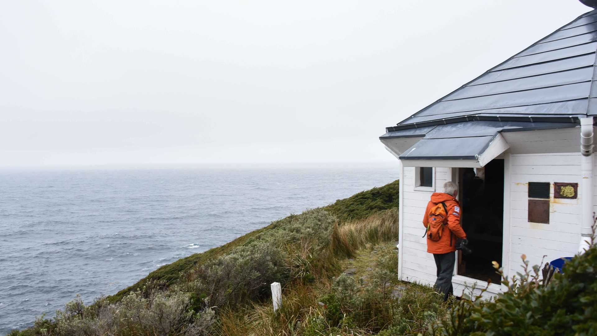 Waking in the protected harbor of San Juan de Salvamento, we began our operations for the day in true Patagonia weather: a bit cloudy with strong winds. We took our Zodiacs to the landing to visit the “Lighthouse at the End of the World.” After a winding hike through low southern beech trees, we crested the top and were treated to a view of the cliffs below and an ever-present fog hanging just above our heads. After lunch, we sailed back to pick up a few researchers we had dropped off in Isla de los Estados a few days prior. The conditions looked favorable, so we were able to make a short Zodiac cruise to see steep cliffs with nesting rockhopper penguins.