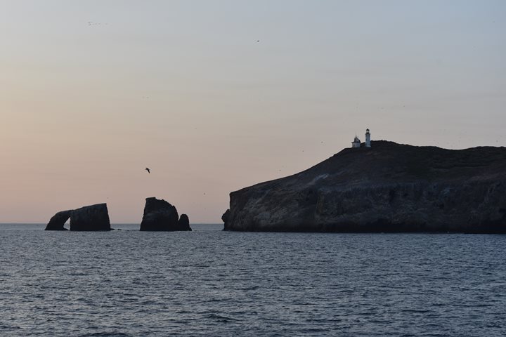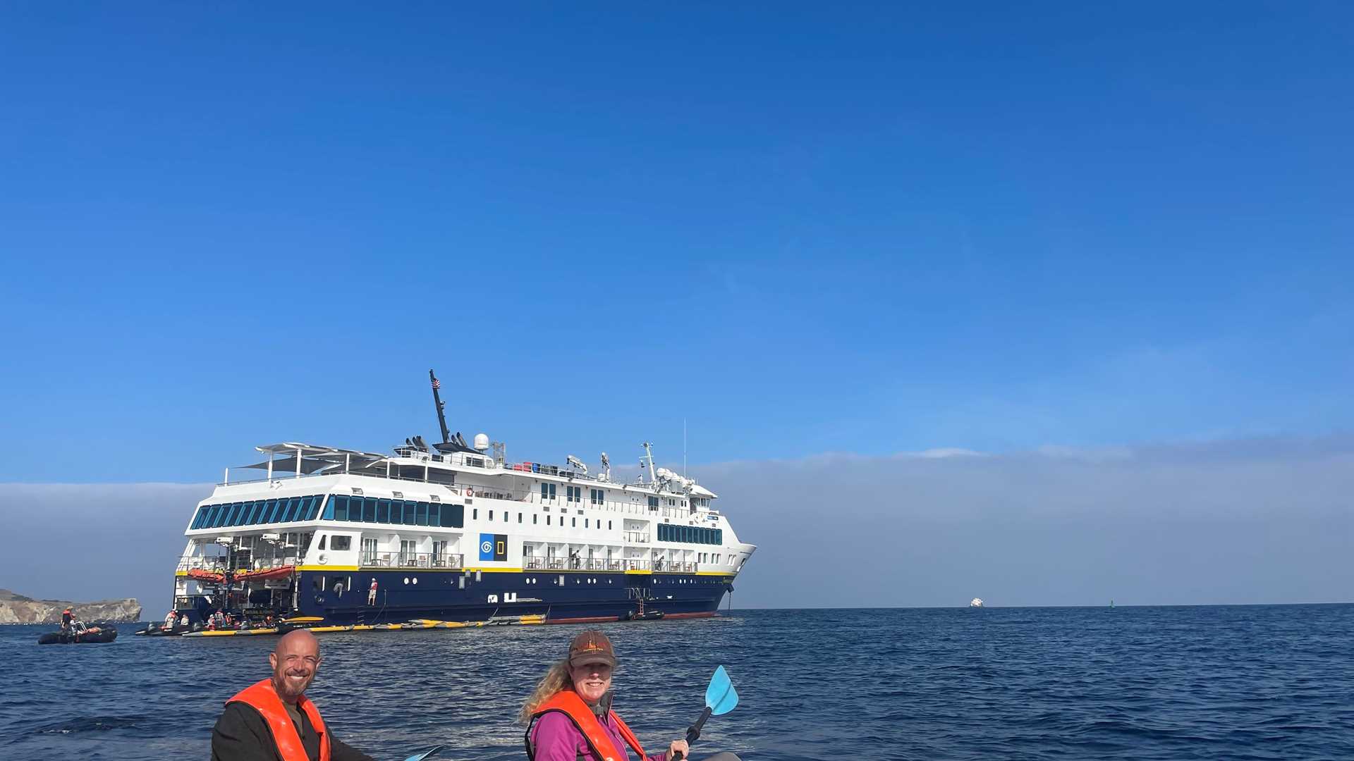“26 miles across the sea, Santa Catalina is a’waitin for me.” Well, it wasn’t 26 miles and we didn’t arrive via the Los Angeles area; instead, we came in through the back door, across 115 miles from San Miguel Island. We arrived at Little Harbor just before dawn. The swells were a bit large, but an offshore reef protects Little Harbor, making the area calm enough for water activities. Almost everyone enjoyed kayaking or stand-up paddleboarding for half the morning. Then, we went hiking on a choice of trails. Some guests went for the overlook; others explored the beach at Shark Cove. The beach yielded several geological and biological treasures, as well as plastic, which we dutifully collected for disposal. After lunch, we sailed to Two Harbors on the sheltered side of the island. Again, several guests went on hikes, while others opted for a Zodiac cruise around Isthmus Cove. They viewed large flocks of cormorants and pelicans on Bird Rock (an apt name), as well as a large male sea lion and his harem. Captain’s Dinner awaited us when we returned to National Geographic Quest , followed by the traditional slide show that displays our guests’ considerable photographic talents. Tomorrow, we sail to the harbor in San Pedro, where we will head off to various ‘harbors’ in the US. It was a grand cruise. Among our many memorable experiences, we viewed firsthand the remarkable success of bringing the island fox, the grey whale, and the brown pelican from near extinction to near historical levels. We also observed the rebounding ecosystems that result from the removal of invasive species. We have seen living proof that we can make a difference if we use our minds, talents, and creativity to solve conservation issues.