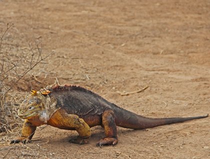 A red trail (due to presence of iron on the rocks) takes us through a Palo Santo forest. Without leaves due to lack of rain, it looks gray at this time of the year. Finally we reach Dragon Hill, where land iguanas can be seen at any time of the year. Large iguanas, mostly yellow in color, are the highlight of the excursion here.