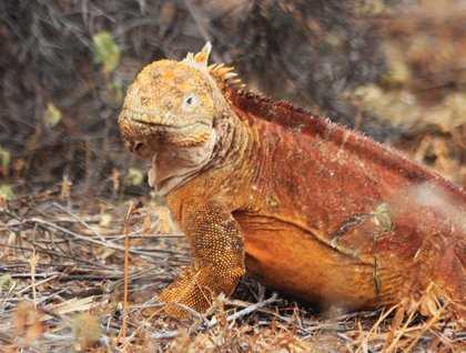 A red trail, due to presence of iron on the rocks, takes us through a Palo Santo forest which is without leaves at this time due to lack of rain and looks gray. Finally we reach Dragon Hill where land iguanas can be seen at any time of the year. Large iguanas mostly yellow in color are the highlight of the excursion here.