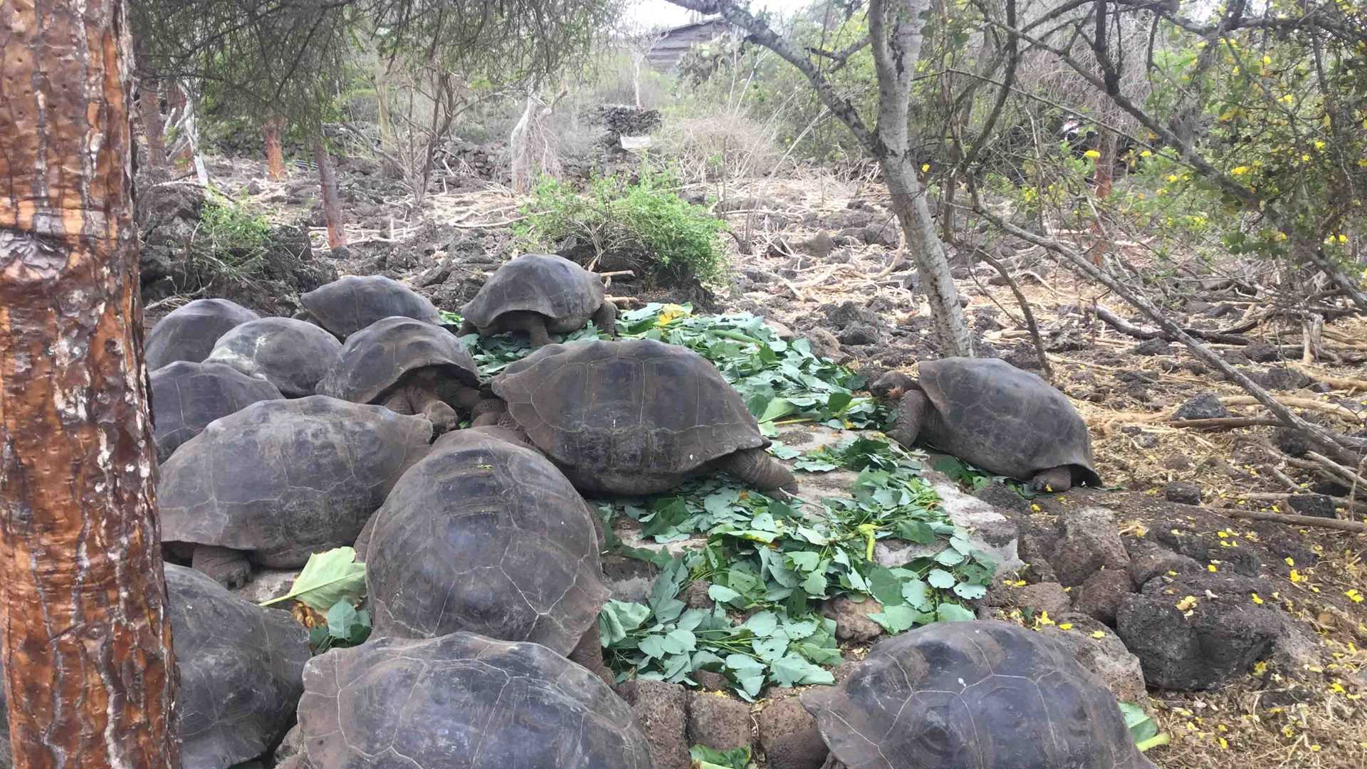 In the afternoon we got to the most awaited destination of the day, a wild tortoise ranch! We had lunch in an open area where tortoises observed us enjoying our meal. As crazy at it seems, those tortoises were not captive, the highlands of Santa Cruz have a population of wild tortoises that come and go from one farm to another. After dessert we wandered around with our Naturalists, having close encounters with these mysterious giants and learning all about their ecology.