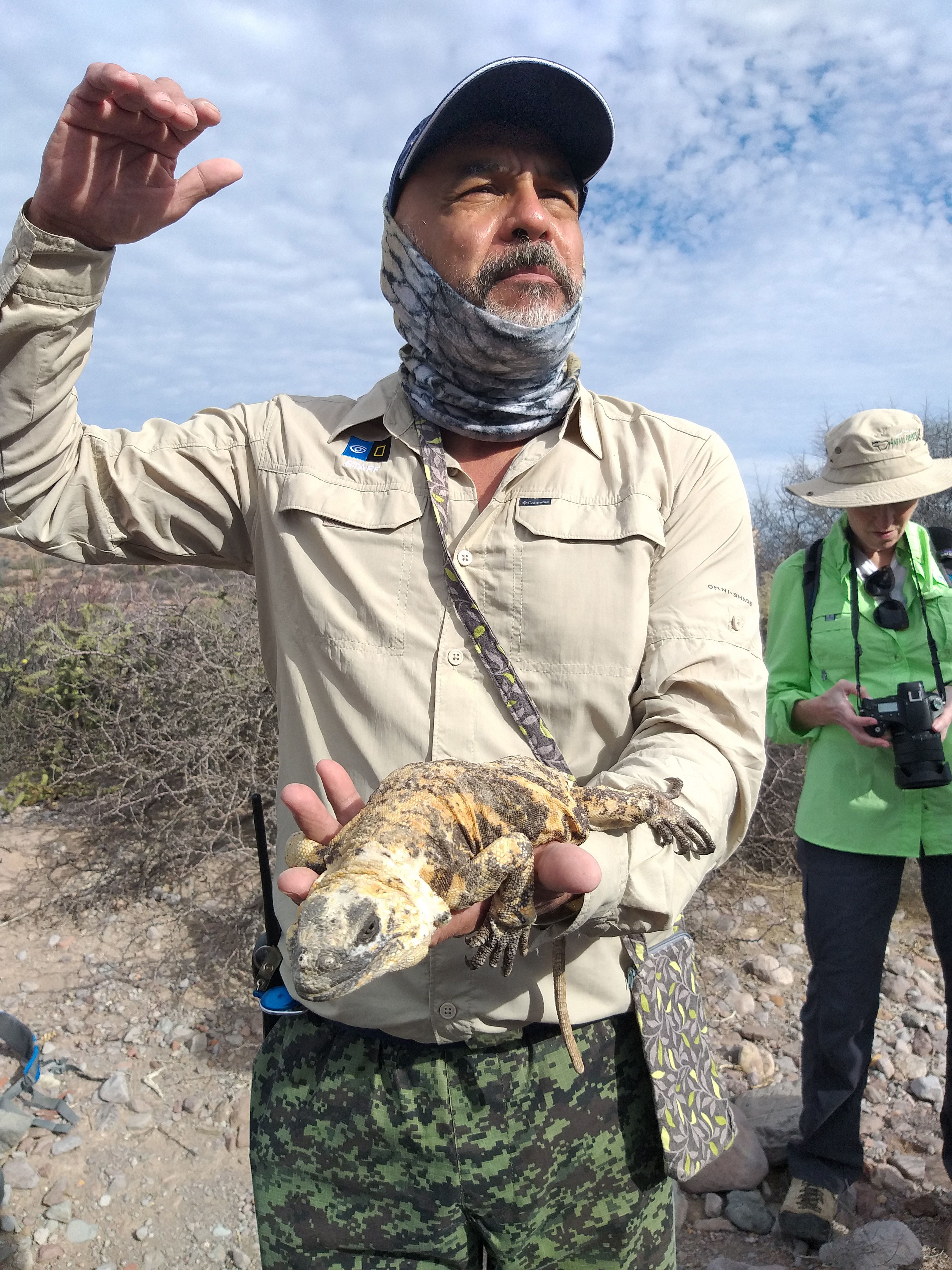 Today, National Geographic Endeavour II visited Cerro Dragon, located on the north part of Santa Cruz Island. We found one of the largest colonies of land iguanas. During our hike, we spotted the iguanas all around the trail. Some basked on the vegetation, and others were active. We saw the zigzag head movement they use to protect their territory and impress females. An Ecuadorian buffet lunch was set up in the dining room. We started with the traditional ceviche and ended with tres leches for dessert! We enjoyed snorkeling and Zodiac rides. We observed wildlife all over the place, including spotted eagle rays, sharks, blue-footed boobies, great blue herons, marine iguanas, and hundreds of other animals. They all reminded us why the Galapagos is so special.
