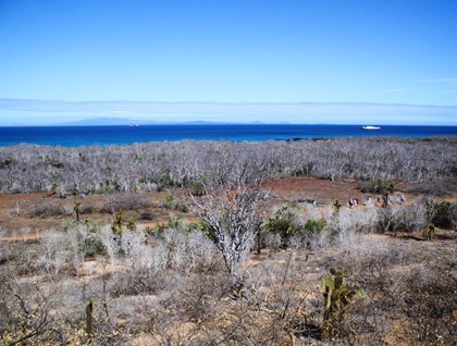 Last night, we navigated to the northwestern side of Santa Cruz Island—it is amazing to see the differences between two spots that are on the same island. By just heading further north, we have come across a completely different scenario. The low lands of Santa Cruz are extremely dry in the north, as the winds that bring the humidity are stopped by the south side.