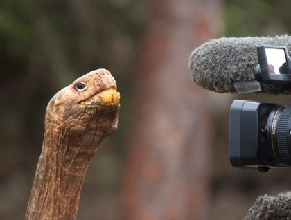 We disembarked on the national park dock and visited the extremely successful captive tortoise breeding center. Here we saw the diminutive and amazingly cute hatchling tortoises and learned about “Super Diego.” Diego is a male tortoise that was taken from the island of Española, and later returned to Galápagos. Since his return a couple decades ago, Diego has been a champion reproducer and has played a huge role in turning a mere 15 surviving adult tortoises into a healthy population of over 2000! I am suggesting that Diego is going to be a much bigger star than the famous Lonesome George – the last tortoise of his species from the northern island of Pinta, and who died of old age – last June. Poor ole George was a sad story and Diego is a very happy one! May his fame spread far and wide – he has brought an entire species back from the brink of extinction. As you can see from today’s photo Super Diego knows he is going to be a big celebrity!