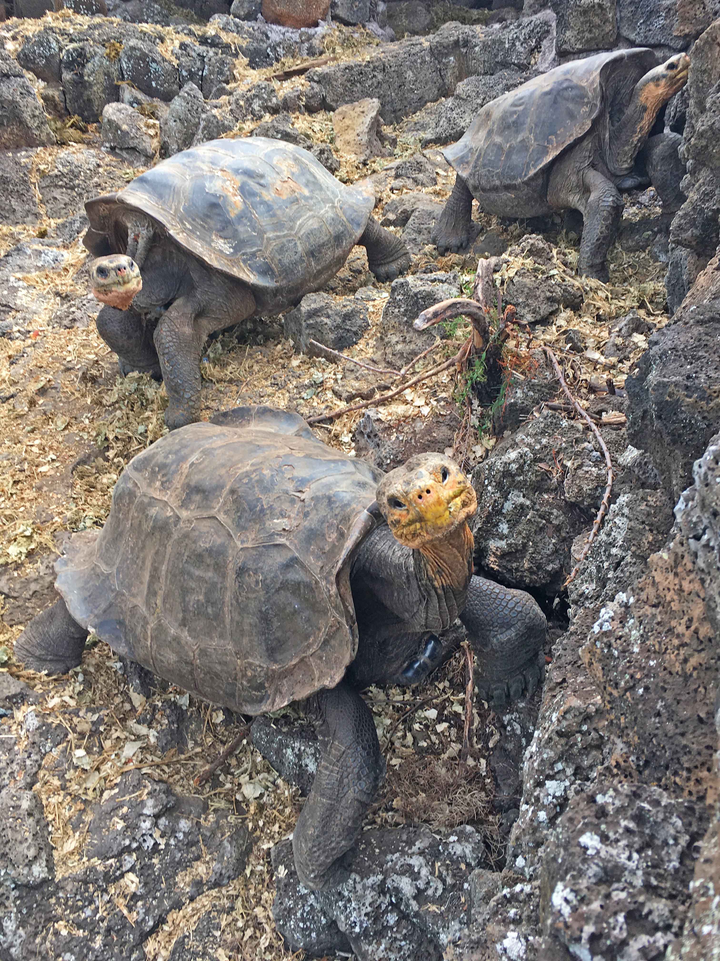 As the days pass on this expedition we do not cease to be amazed at the diversity and contrasts we find every day. Puerto Ayora on Santa Cruz Island was no exception as we headed to the Charles Darwin Research center to learn about the incredible conservation work that takes place here. Upon entering the station we were surrounded by examples of endemic plant species and the Galapagos 2050 program which we hope will help restore the islands that have been damaged by the introduction of invasive species, such as Indian blackberry, quinine tree, and guava. As we further explore we find an insect containment facility which has been used to study the introduction of biological controls for pests such as the Cottony Cushion Scale insect and Philornis downsi, a parasitic fly that threatens to wipe out Darwin finches if left unchecked. Advances are being made and we’ve come very far with restoration, however it is a constant battle as the pressure and invasive species populations grow. Entering the tortoise area we learn about the saving of the Galapagos tortoise dynasty by the rearing in captivity and breeding in captivity programs that have been an enormous success. We are lucky to see the recent arrivals from northern Isabela Island that are genetically similar to Lonesome George’s Pinta population that was thought to be extinct with the passing of Lonesome George in 2012. Little by little the tortoise population is being reestablished to its previous size and range.