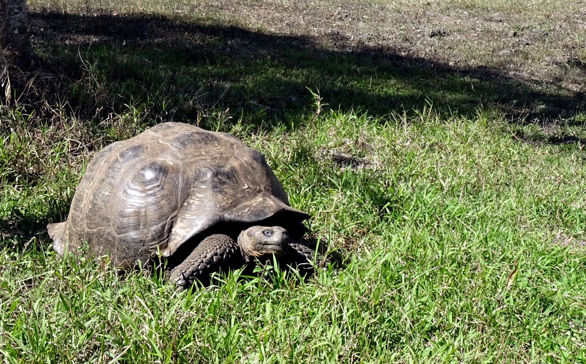 This afternoon and right after lunch, we went to look for Galapagos giant tortoises in the wild, at a protected area near the restaurant where they are known to roam freely. We were very fortunate, and we found several of these animals feeding on grasses, while others were spotted sleeping under the bushes. It was incredible to see these giants up close, in their natural habitat, and we admired by the green, lush environment around us, as we walked through a forest full of mosses and lichens.
