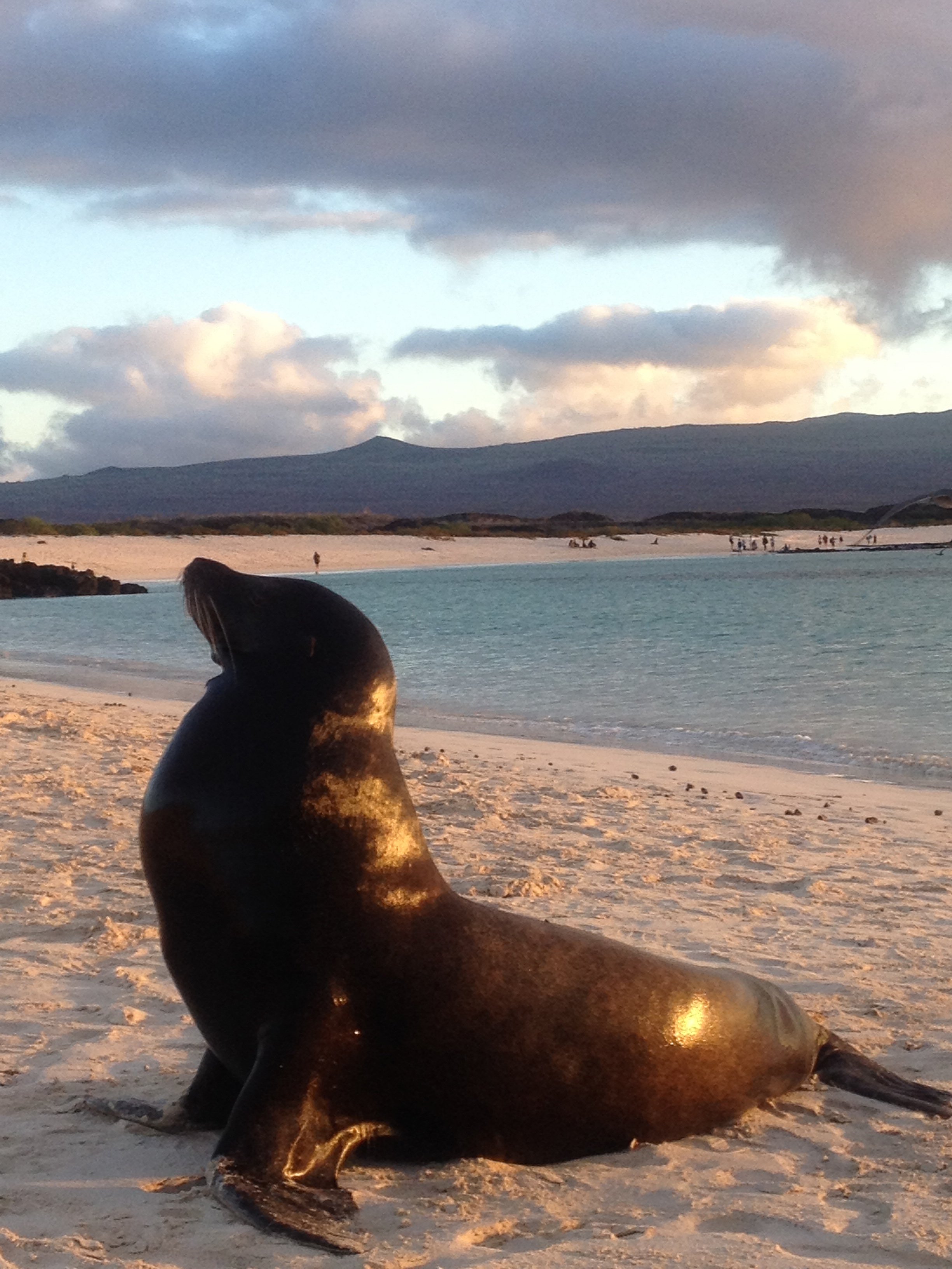After lunch, our mission was to look for giant tortoises as we went higher up in the island; we found many of them, roaming freely along the green vegetation, feeding or resting peacefully under the attentive sight of our curious guests. All these giant reptiles mate and feed on the abundant lush grass typical of the season. Of course, we had a chance to observe a couple of them mating while up there. Plus, some mockingbirds pointed us to the gigantic trees that surrounded that magical place.