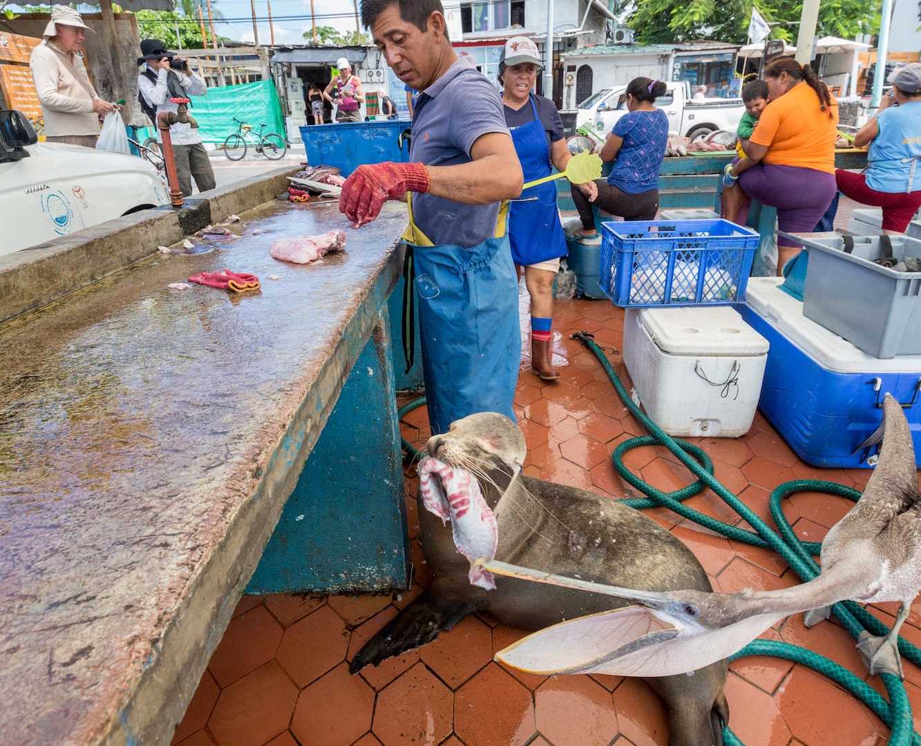 We spent the whole day on my home island, Santa Cruz; the second largest island of the Galapagos Archipelago and the most populated. This island is an example of fantastic coexistence between humans and wildlife. We started the day with a visit to the Giant Tortoise Breeding Center, where our guests learned about the incredibly successful program run by the National Park together with the Charles Darwin Research Station. Afterwards, we visited the cozy town of Puerto Ayora, with a stop at the fishermen’ market and a wonderful opportunity to support the local economy by visiting local craft stores.