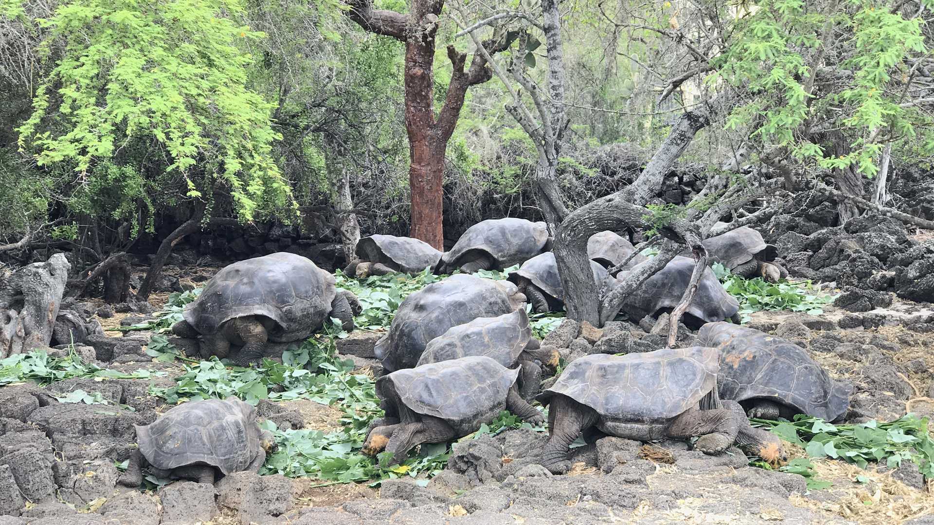 Today we spent – in civilization! Puerto Ayora is home for 20,000 Galapageans, is the largest town in the archipelago and is the home base for both the National Park and the Charles Darwin Research Station. We visited the Darwin Station and the tortoise breeding center that is run by the National Park. We saw the famous Lonesome George (embalmed!) who was the last pure Pinta Island tortoise and who died several years ago of old age without reproducing. We visited the highlands, explored a lava tunnel, and learned about coffee and sugar cane production. We had a bountiful lunch and spent an hour walking among wild tortoises, which- like all the rest of the wildlife here in Galapagos – ignored us and went about their slow, deliberate lives while we took photos of them from all angles and heights.