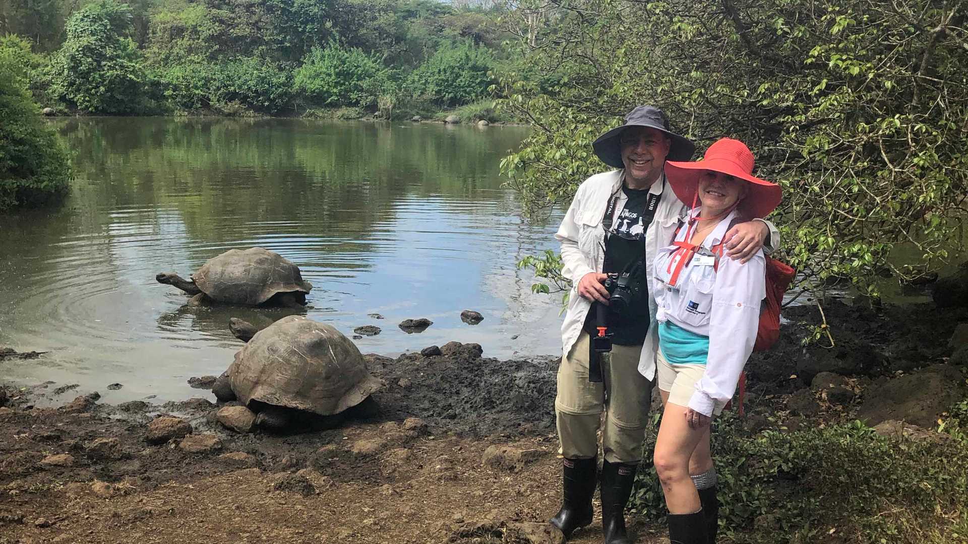 We spent the day exploring Santa Cruz Island. Guests disembarked in the morning to visit a ranch in the highlands of Santa Cruz where we encountered the Galapagos giant tortoise. We were quite lucky on this day, as we observed many giant tortoises of varying ages. The freshwater pond where these giants tend to aggregate was teeming with life; we counted at least 25 tortoises there alone! Giant tortoises are considered bioengineers; by virtue of their natural history, they alter their environment. They graze upon their favorite plants and drop seeds across the landscape—these seeds are perfectly ready for germination, nestled in a little bundle of high nutrient fertilizer. The Santa Cruz giant tortoise exhibits a dome-shaped carapace, an advantageous adaptation for plowing through the dense vegetation of an island with significant precipitation.